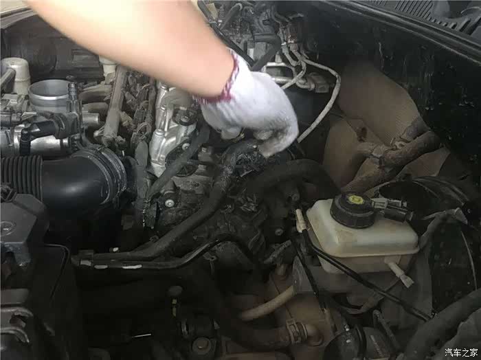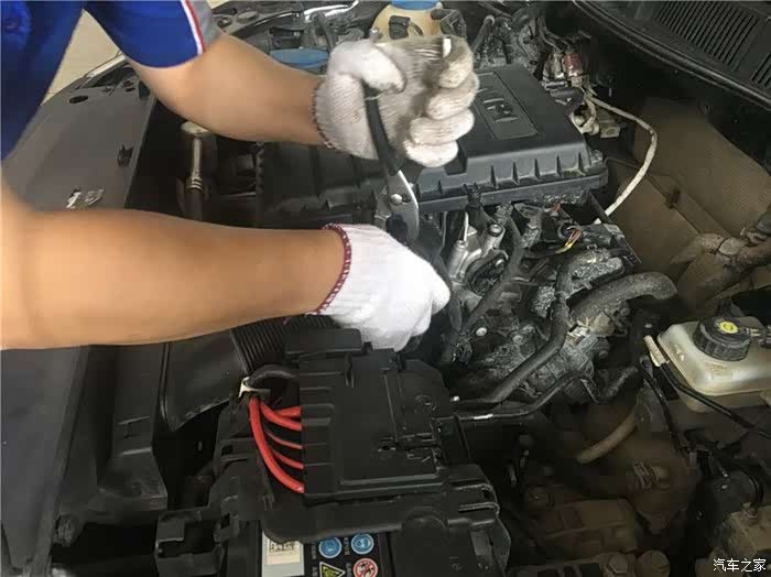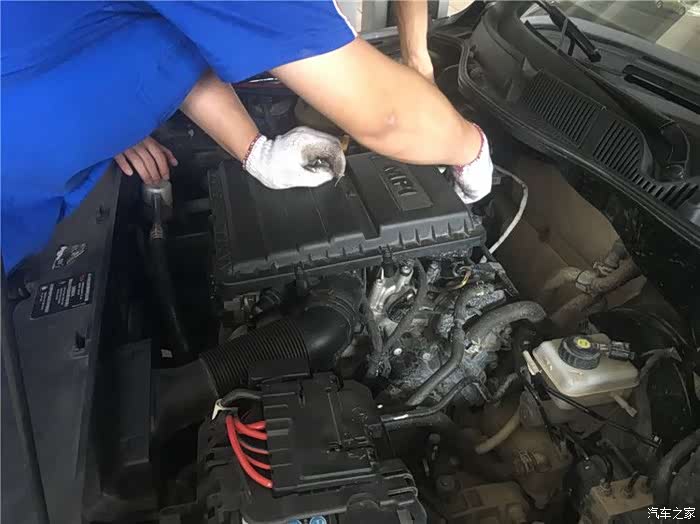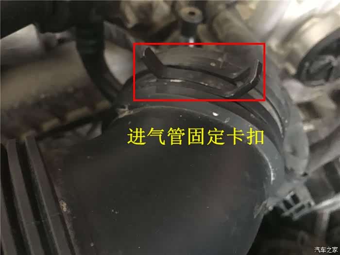 首先师傅开始拆卸发动机进气管上的卡扣,注意不能搞断了