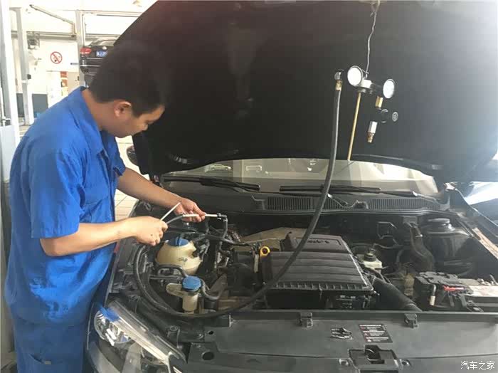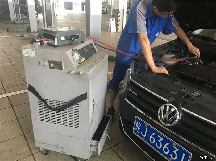 就当保养到达尾声的时候,服务顾问告知现在正值厂家的初夏享优惠 检测送清凉活动,只要到店均可以享受免费检测空调系统制冷情况,一听这么好的福利怎么能错过,于是感谢帅哥之余他早已通知了保养师傅拉来了设备着手检查了