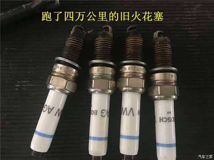 已经使用了四万公里的火花塞很快的就被取出了,看起来每次点火被燃烧的有点黑了