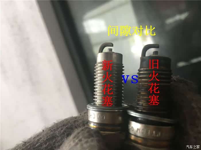 为此我们拿出新的火花塞来与旧的做一个明显的对比,不比较不知道啊,旧的听保养师傅说中间点火间隙有点大了,还好更换掉了