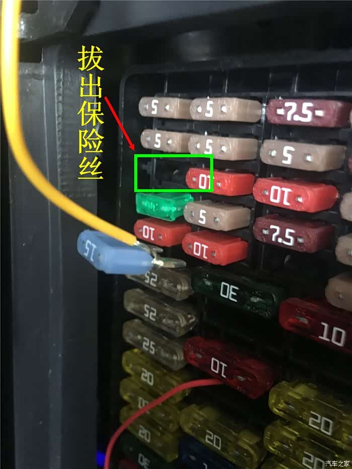 在做喷油嘴清洗前师傅打开保险盒查看了一下朗逸的保险丝分布图并拔掉燃油泵继电器的保险丝
