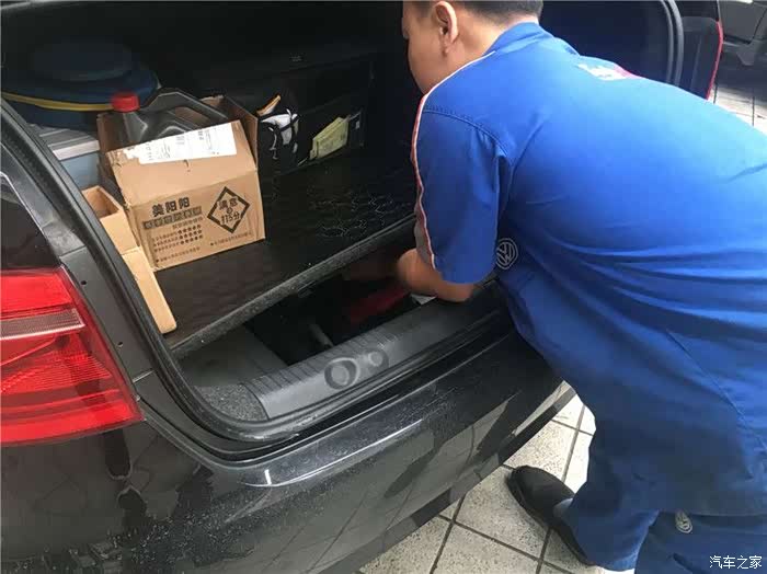 这次的常规检查不再是检查灯光了,因为那些在过质保前都已经查过了,这次师傅帮忙查看了备胎情况,车友们发现了没,在后备箱的盒子里,我偷偷的带机油跟养护品来了