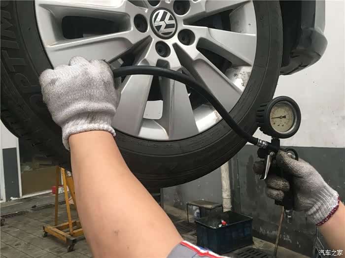 与之同时另有一名师傅帮忙测量胎压,节约保养时间