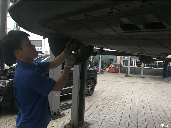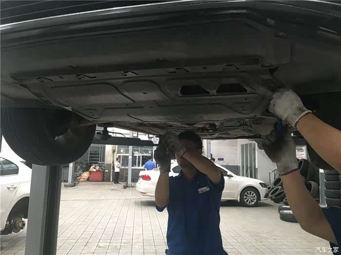 师傅开始下发动机护板,自己检查了下底盘此次没有磕碰的痕迹
