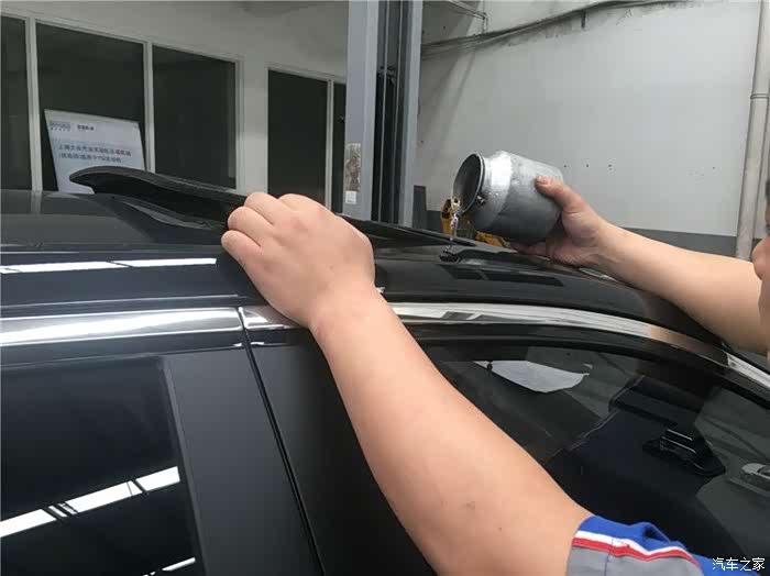 尾末师傅帮忙用水倒入天窗导水槽看看是否漏水,虽然是好的,但是每次检查把问题防范于未然总是好的