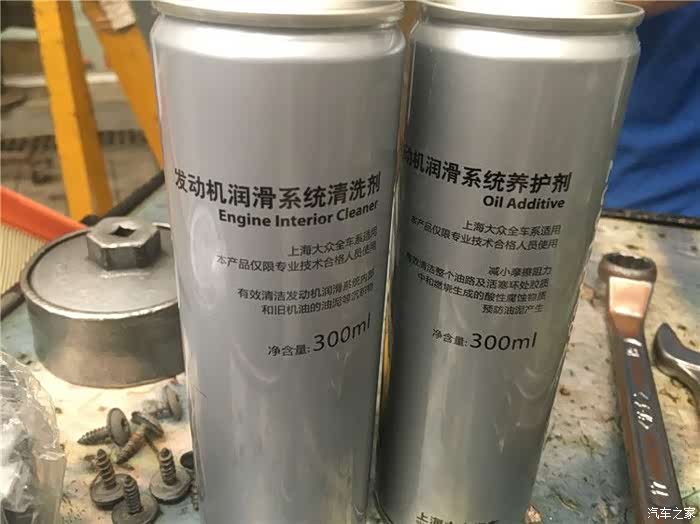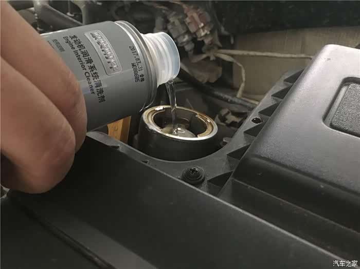 在进行保养前首先添加发动机润滑系统清洗剂并怠速10分钟左右