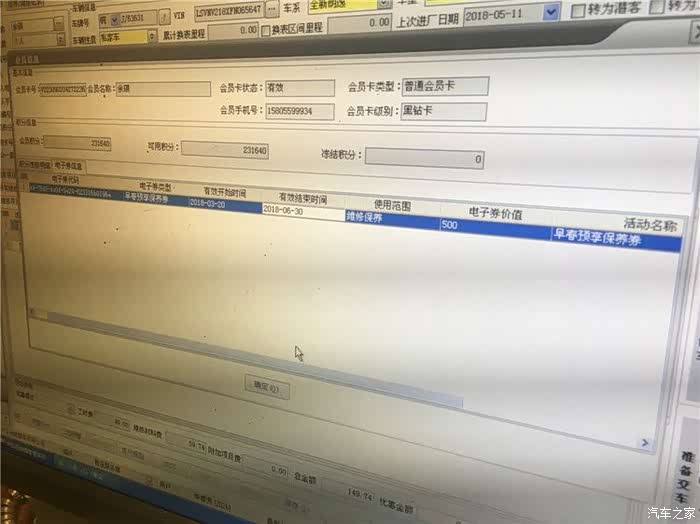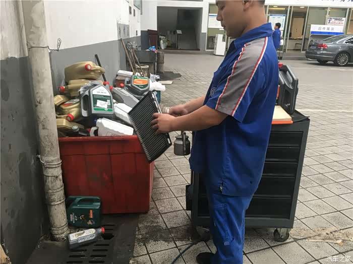 一旁的车友还在保养当中,看了下首保居然升级了黑钻机油,好家伙