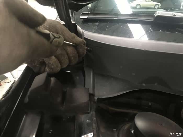 怠速时间完毕后师傅开始拆卸发动机盖板