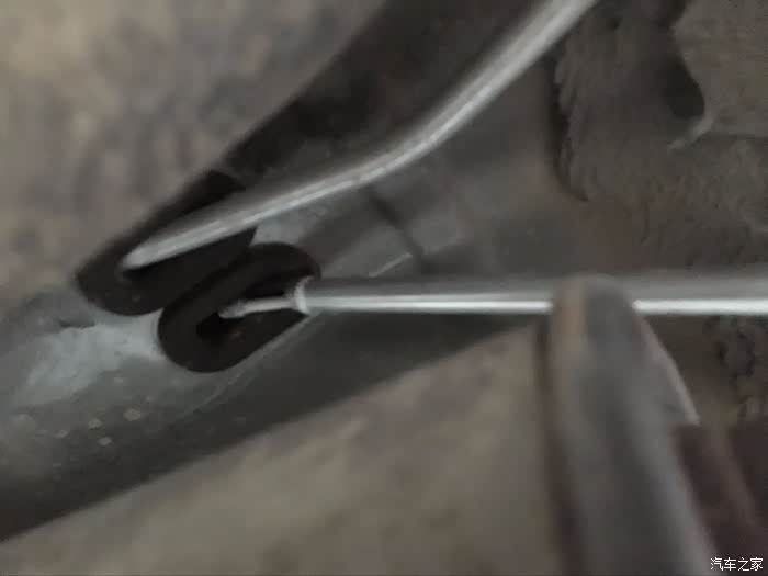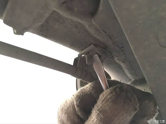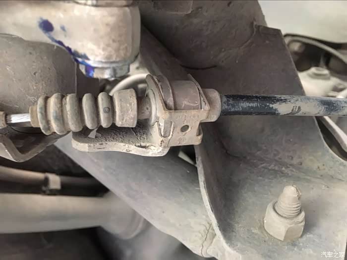 朗逸的手刹拉线在底盘的固定铆钉很特别