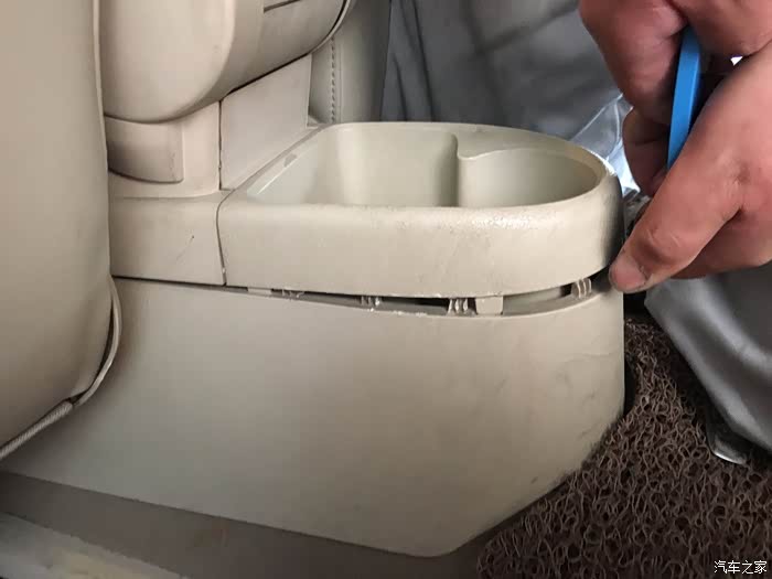 手套箱后面的储物盒是通过卡扣固定的,并没有什么螺丝,可以用撬板翘起来,然后扳开取下。