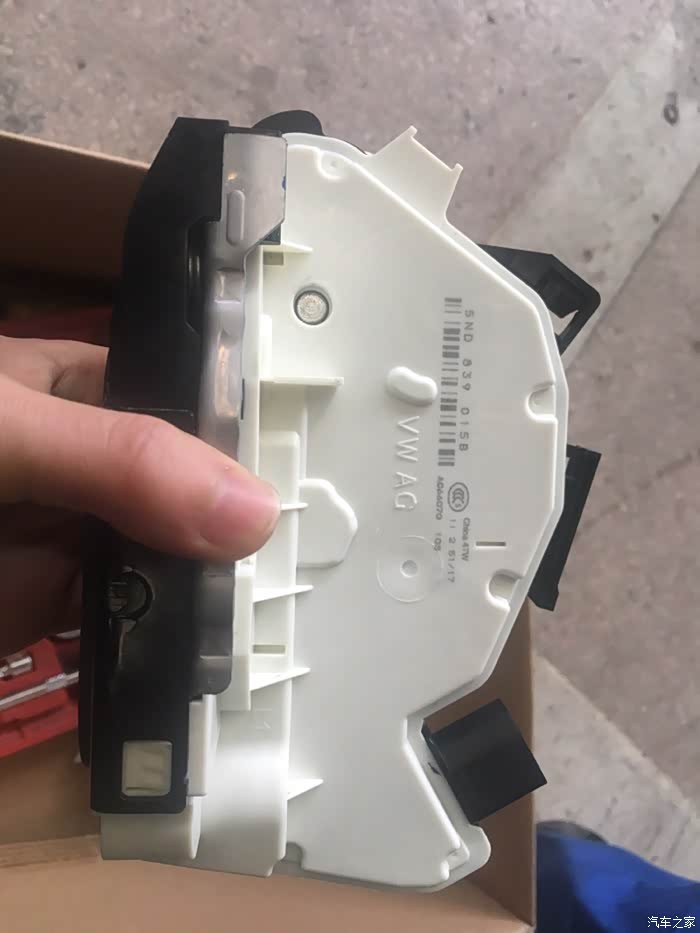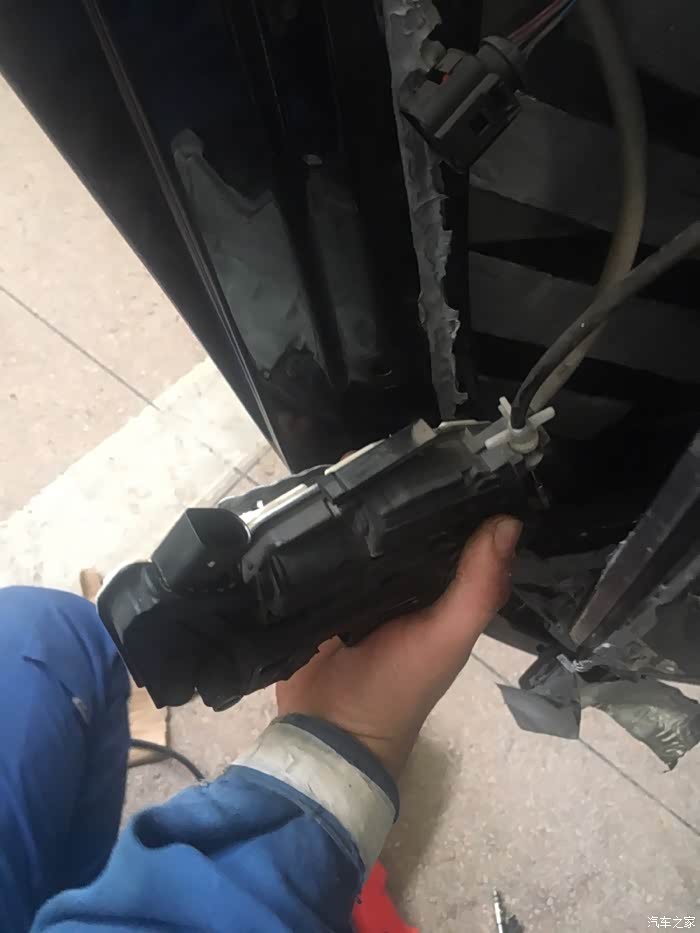 钣金师傅取下故障门锁认真的与新的来了一个对比