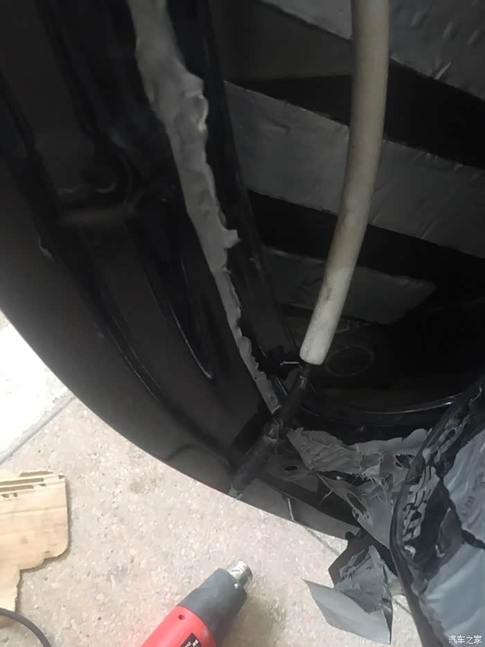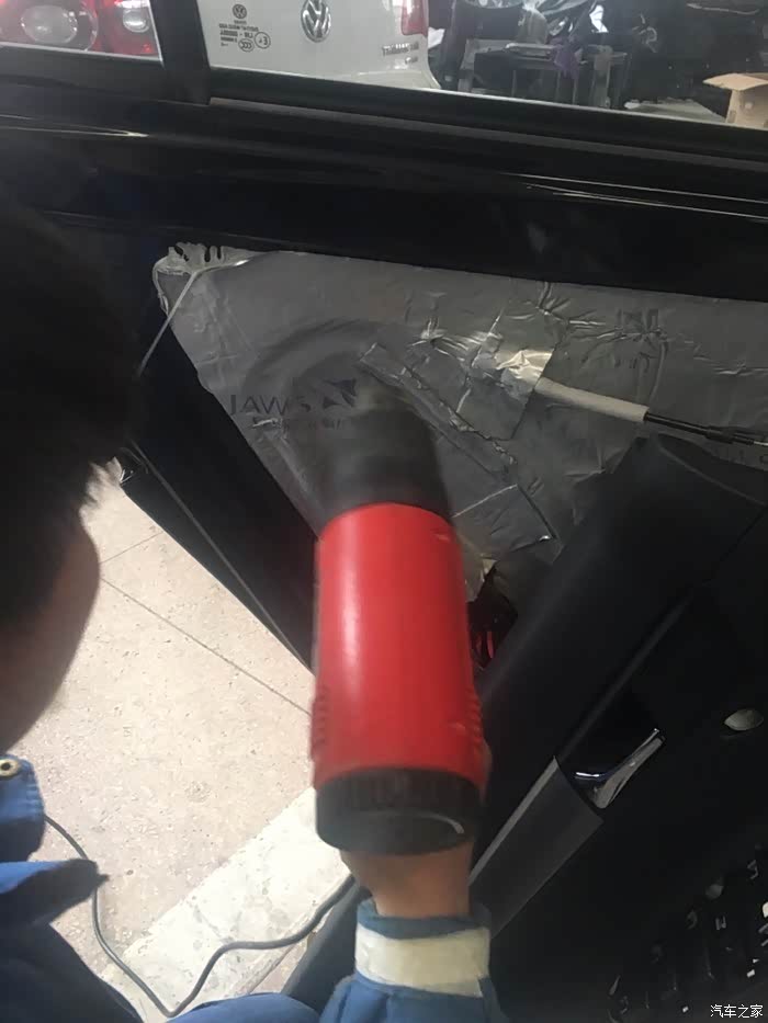 安装完后就是怎么粘回隔音膜了,原理很简单还是使用热烤枪把膜吹热并使用一个小滚轮来回轮动使其粘贴牢固