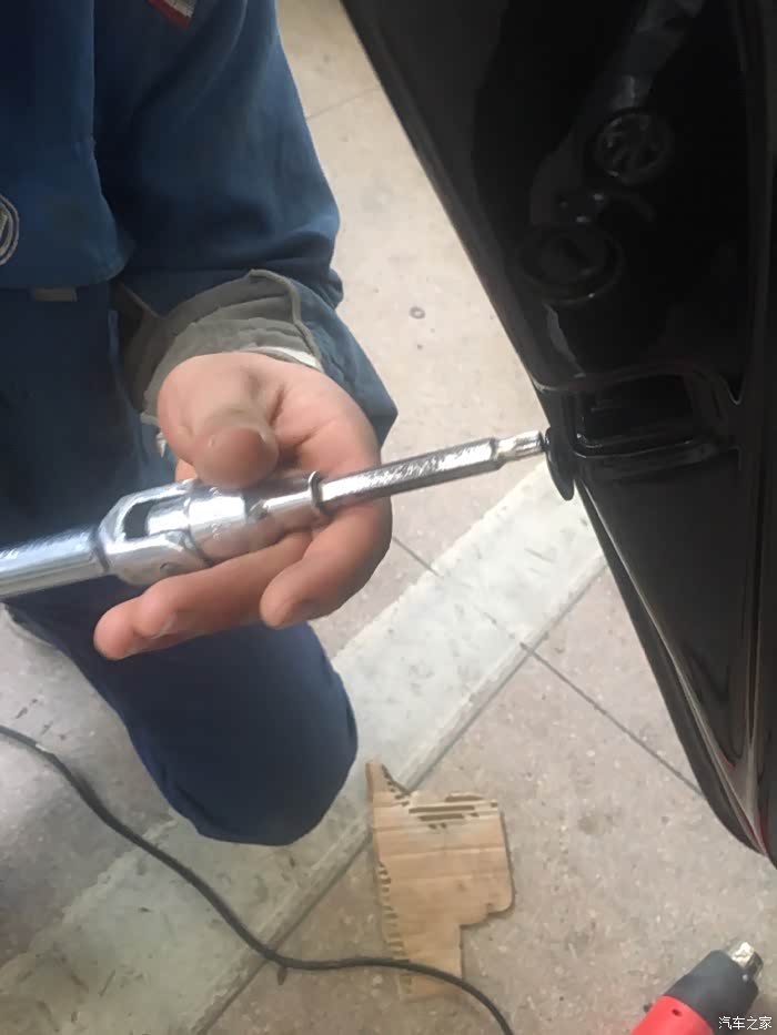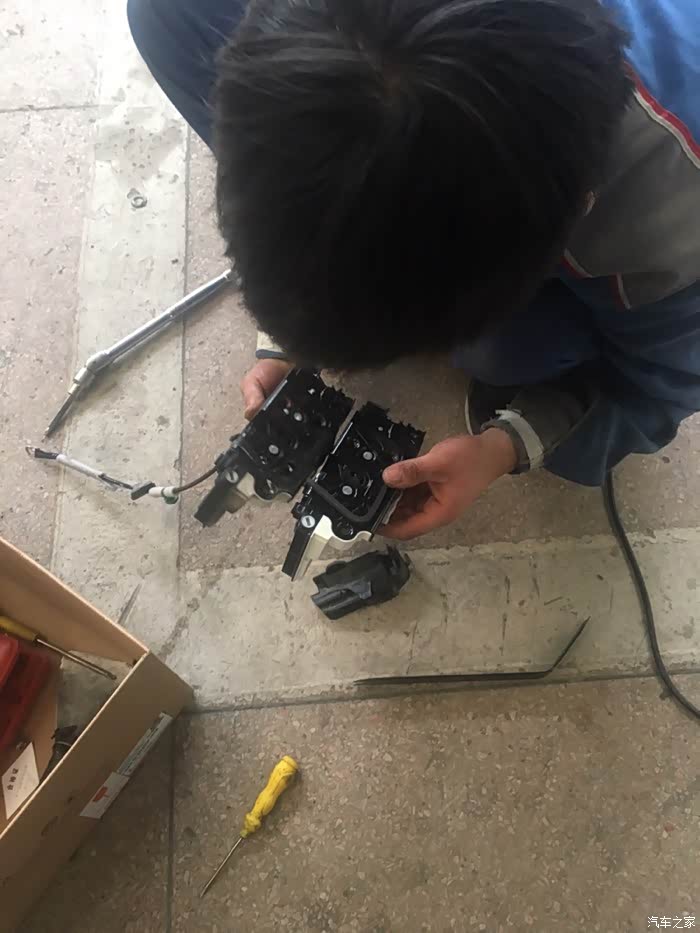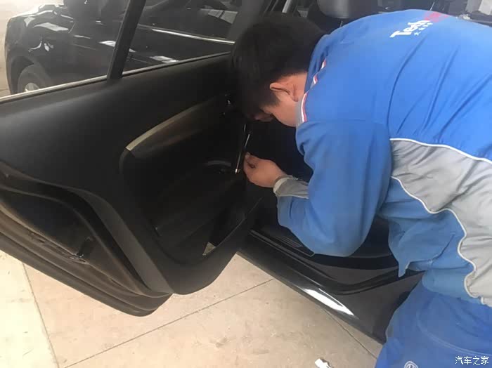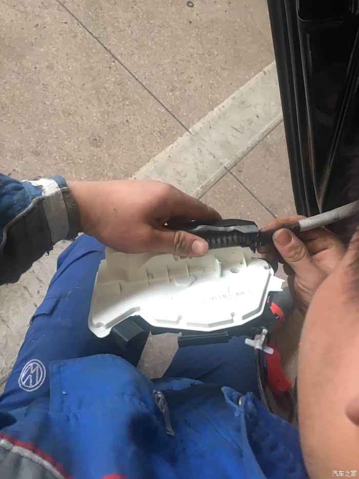 4S一般都是分工明确的,这一点比在外面小型汽修厂好的多,换门锁由钣金工操作,毕竟对于维修大众他们对于每一个螺丝都很熟悉,跟师傅交流完问题跟注意细节以外就开始动手了