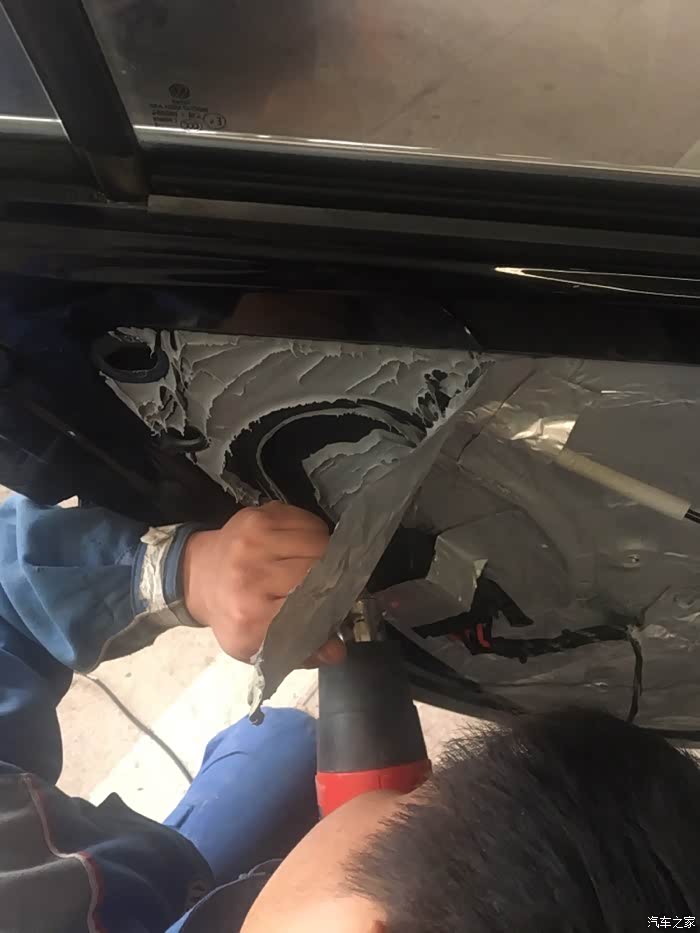 如果是没有做隔音就相对简单很多,但是做了隔音在更换就繁琐些,隔音膜其实就是一层铝纸加一层厚厚的胶,贴上容易扯下难,不过作为资深车友应该都知道用热风吹一吹的原理,在这就不多说了