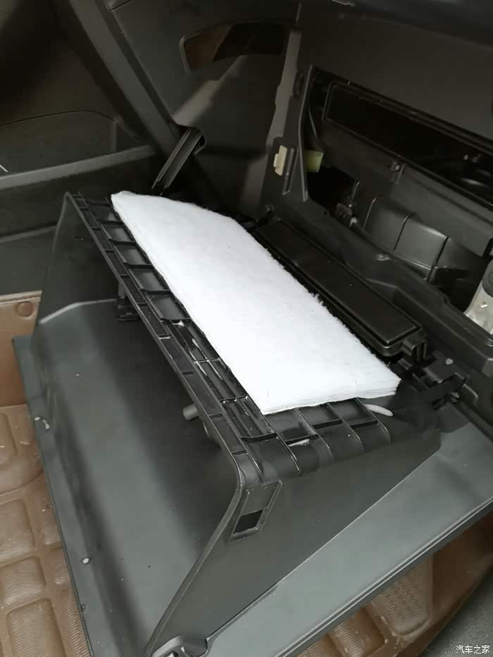 拆开看到手套箱后面一大块吸音棉,没想到,真没想到