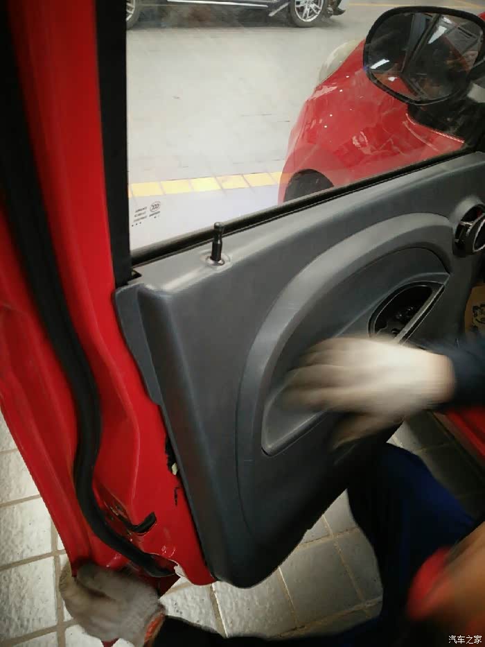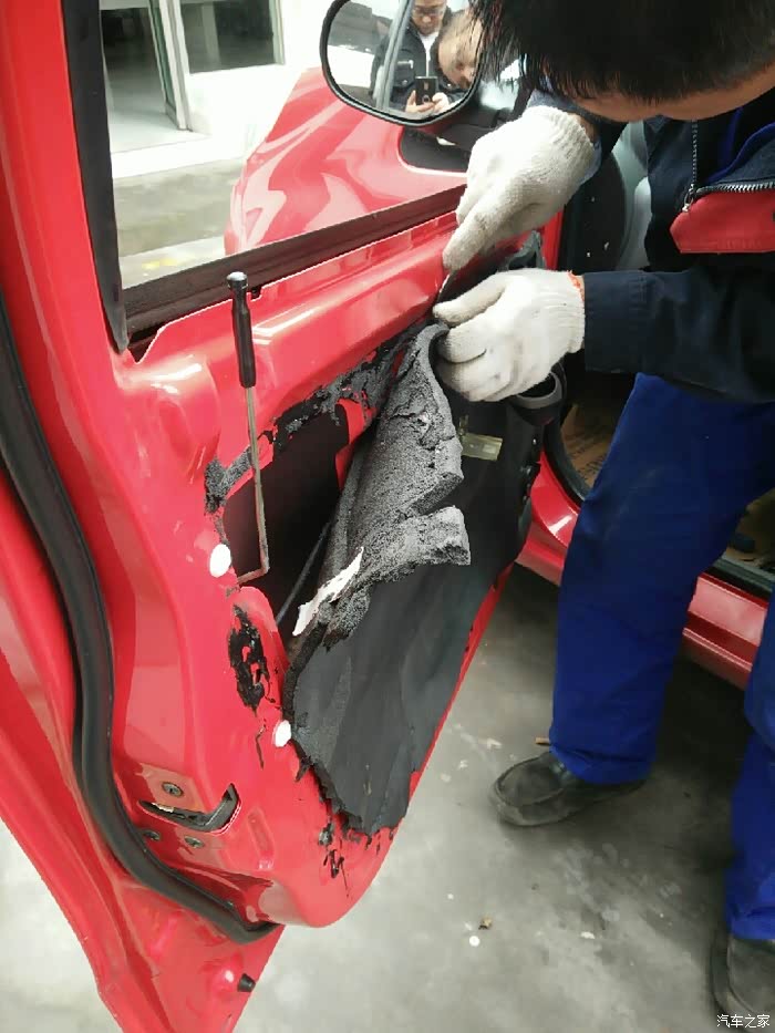 师傅动作挺麻利的,很快就把内衬门板给拆下来了