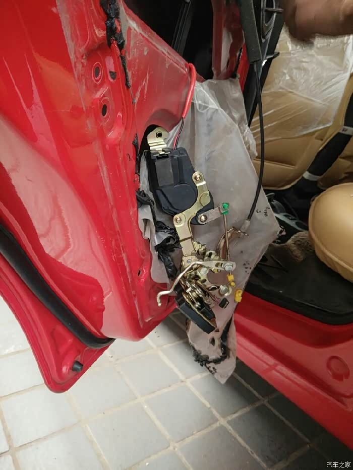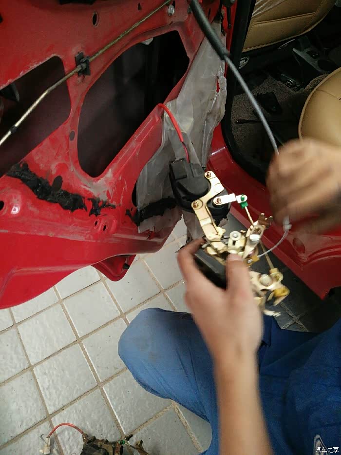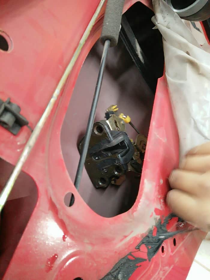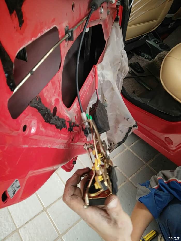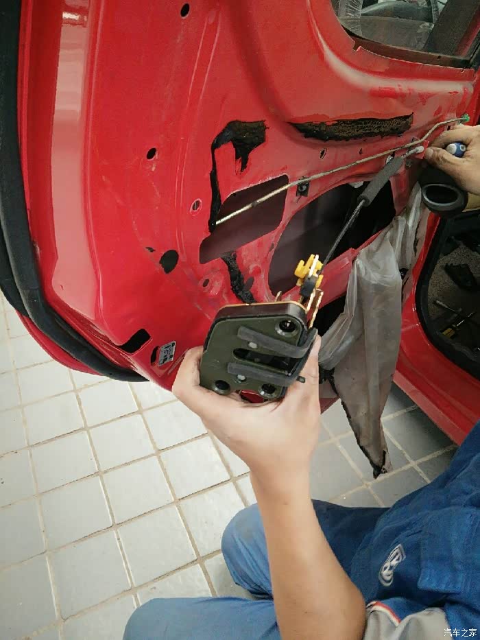 咱立刻开上小迷你往另一家SSSS店而去。来到这家SSSS店,师傅马上开始动工,在换中控左后门锁总成调试的过程中,又发现后门内开拉索总成里面的拉索不能自动回位,拆开一看是由于时间长了里面生锈了,坏了得换了,为了解决问题,该换就得换!解决问题才是第一要务嘛!下面就是咱家小迷你更换中控左后门锁总成和后门内开拉索总成全过程!