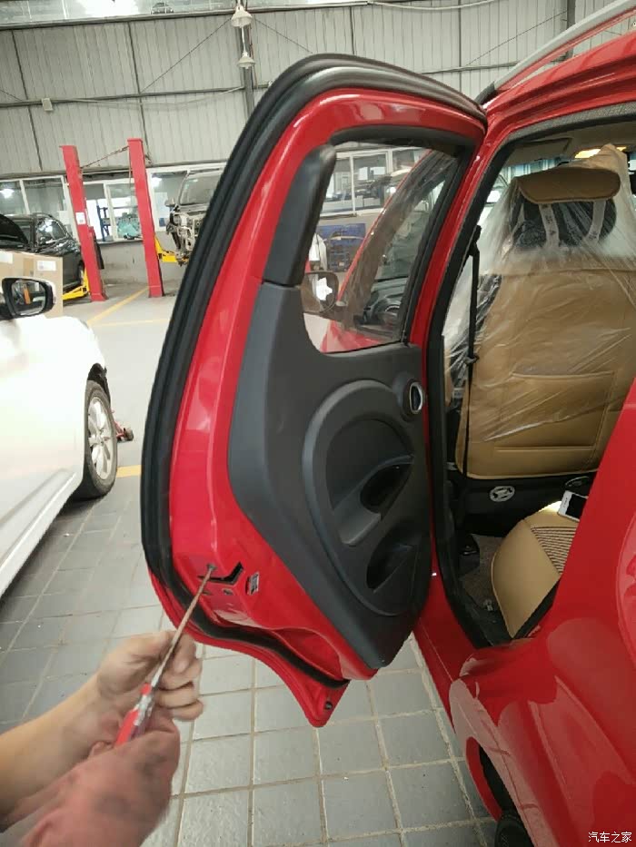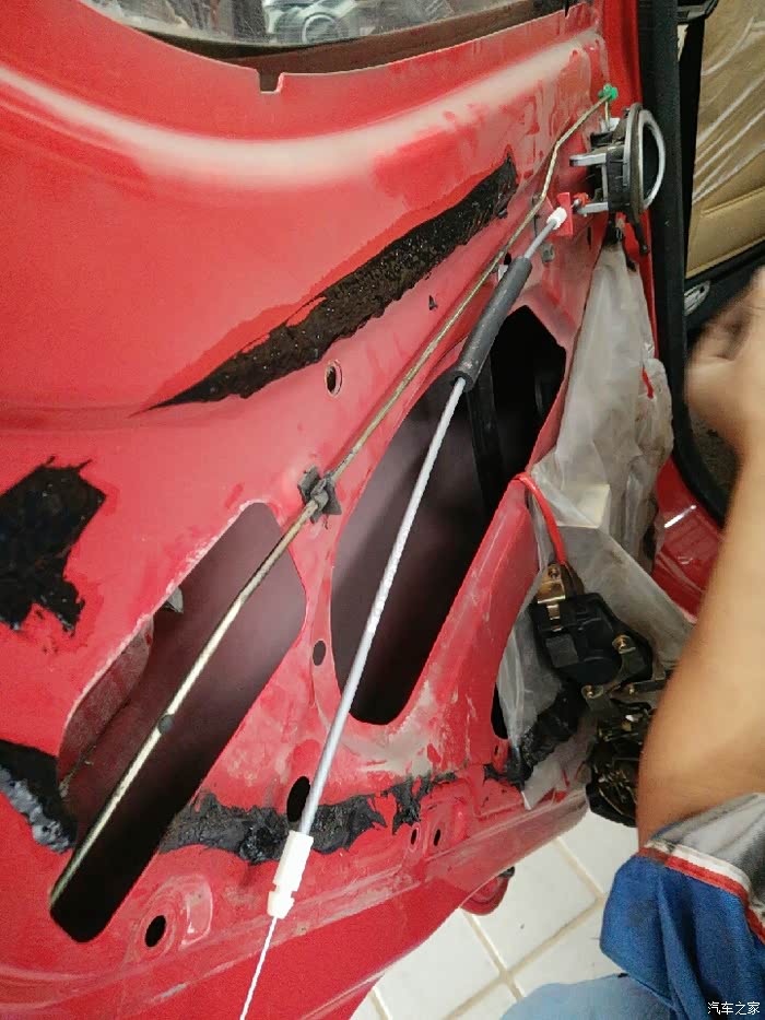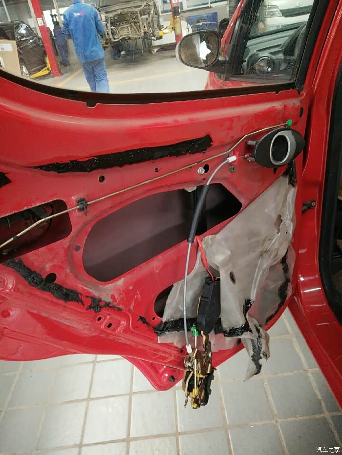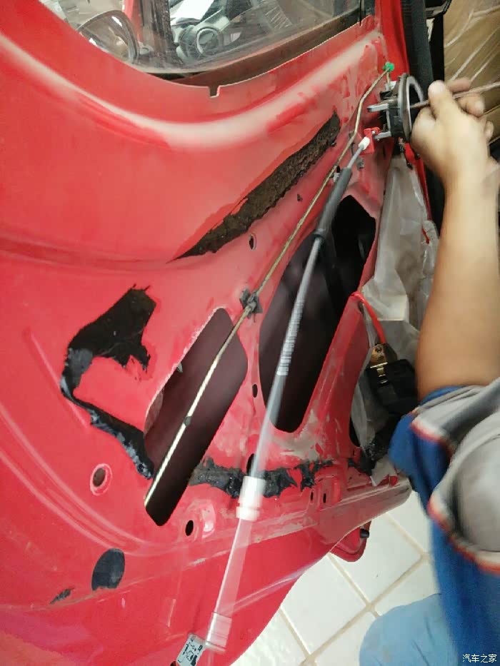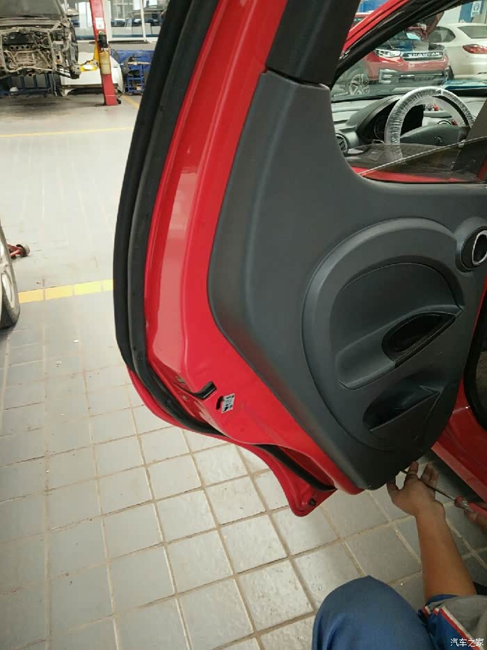 咱立刻开上小迷你往另一家SSSS店而去。来到这家SSSS店,师傅马上开始动工,在换中控左后门锁总成调试的过程中,又发现后门内开拉索总成里面的拉索不能自动回位,拆开一看是由于时间长了里面生锈了,坏了得换了,为了解决问题,该换就得换!解决问题才是第一要务嘛!下面就是咱家小迷你更换中控左后门锁总成和后门内开拉索总成全过程!