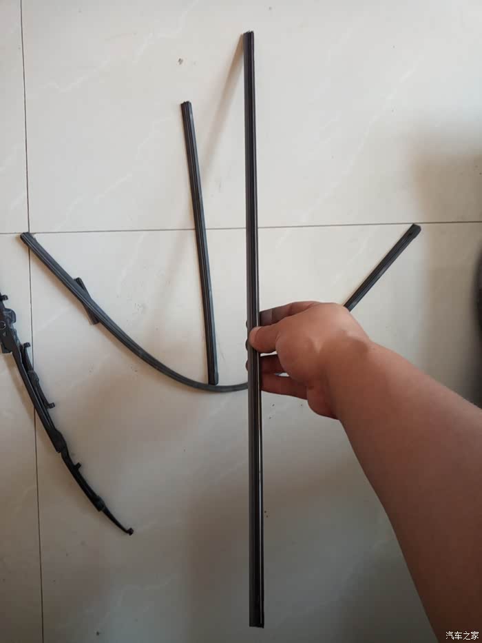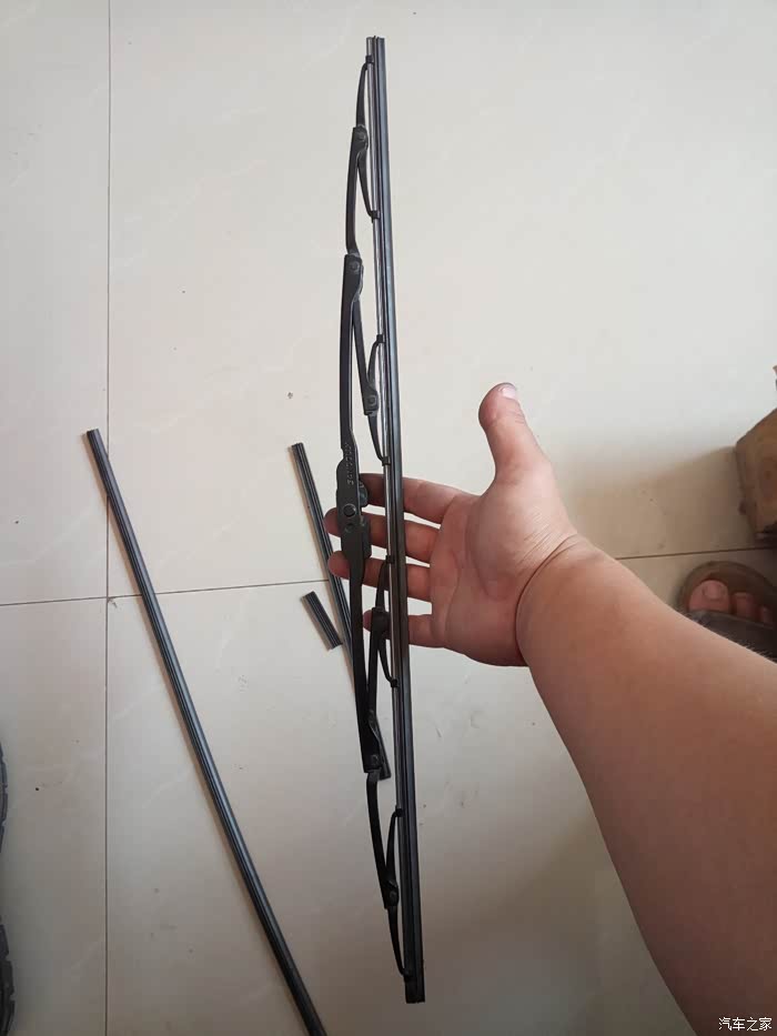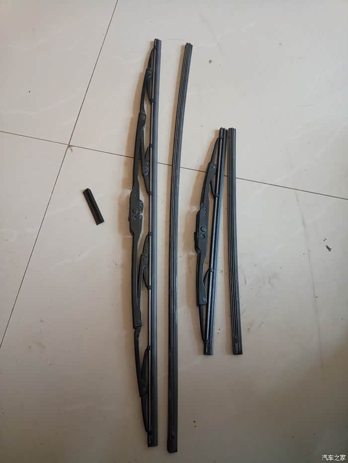 从上街回来之后,又发现车身干了以后,有水痕的地方,有很明显的灰迹,再一次证实刮不干净的事实。1.可能是我的前档玻璃的问题,2.也可能是我用的雨刮不好。后来的实际用车中,越来越不能接受这样的问题,决定换。原来的有骨雨刮还在,刮条有点干裂的意思,干脆网上买了胶条,回来之后换胶条,把有骨雨刮装回去。还原原车本质。