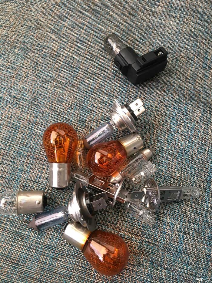 各种备用灯泡。刹车灯泡已经安装上去,此图中已经没有刹车灯泡了。