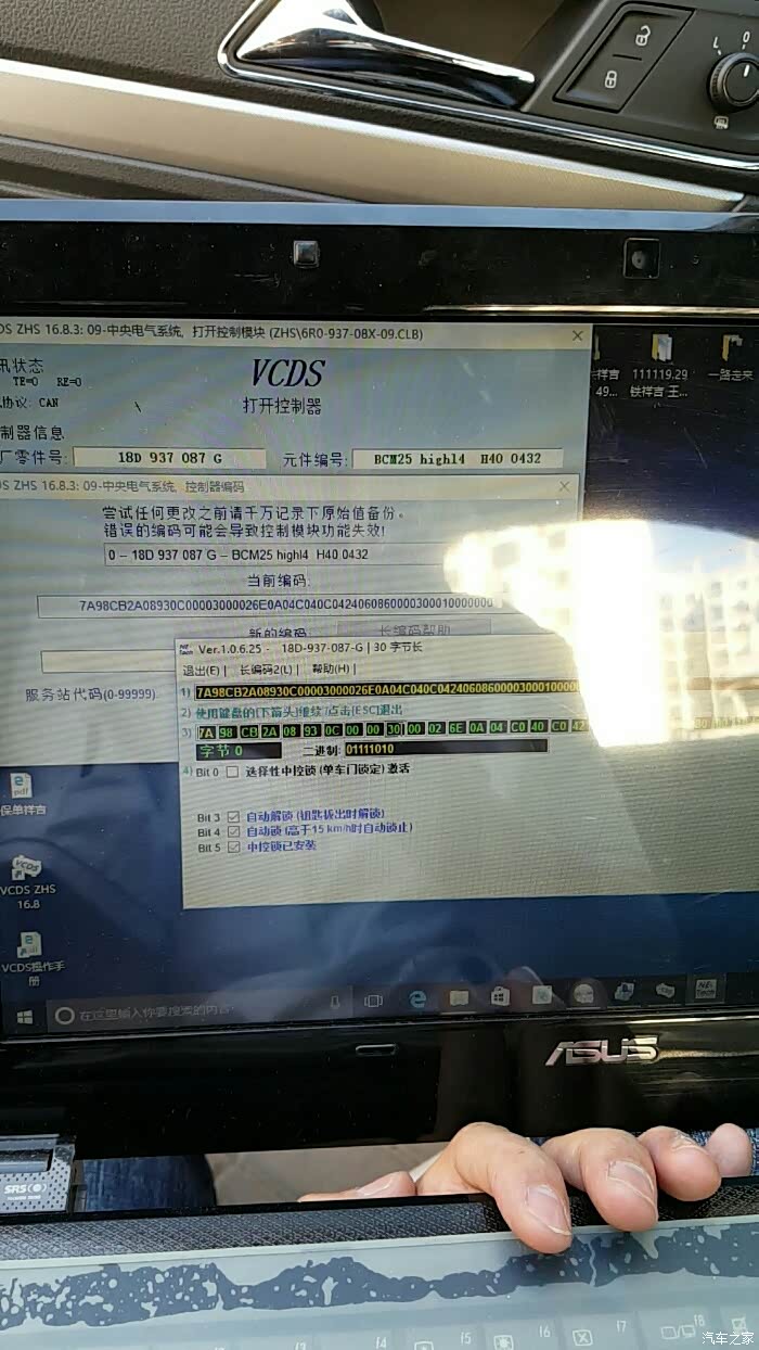 选择模块----09中央电器----编码控制----长编码帮助-----第9字节30改成38或者下面的多功能方向盘已安装打勾就可以了 退出执行编码 就OK了