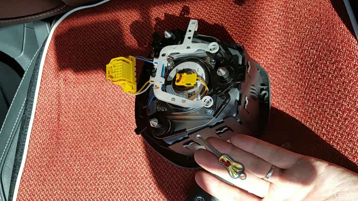 拍照记录接线位置,条件有限,工具简陋,一个掏耳勺的就把气囊卸了,