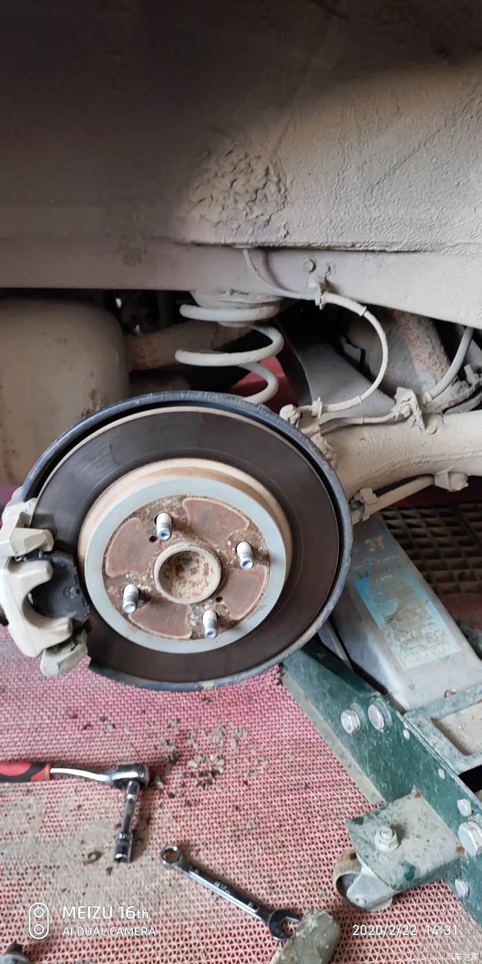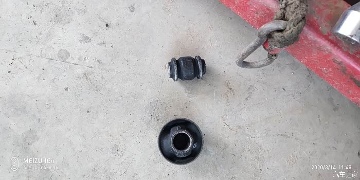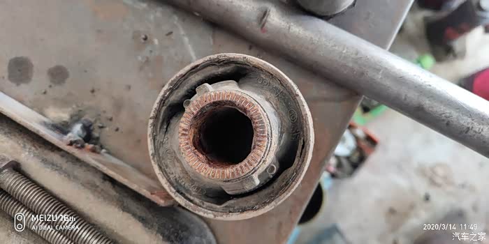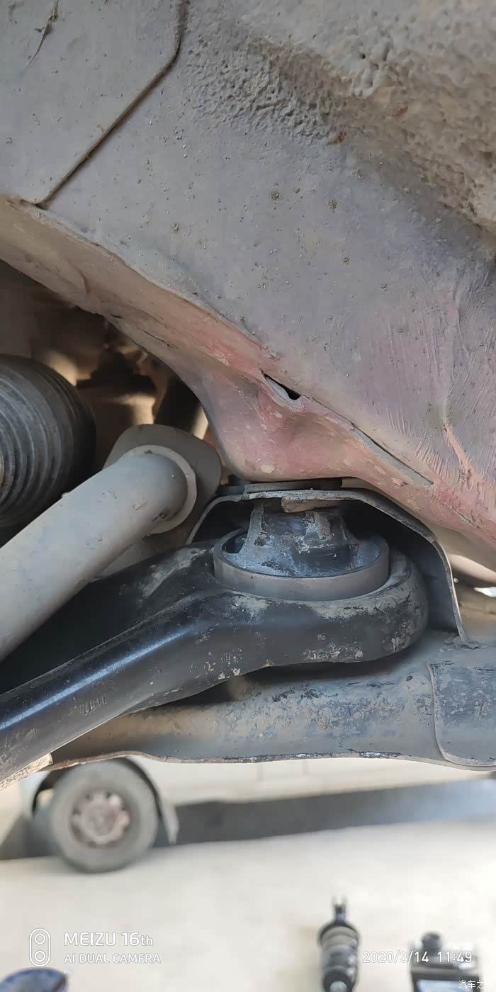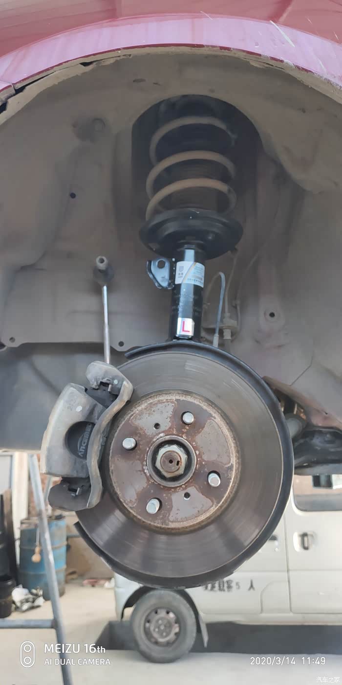 上面装好,下面也装好,螺丝全部上紧。后面的就算完工了。前面的由于没有弹簧夹子卸不下来,最近才找个修理地方找人帮忙卸下,胶套也需要液压机压才能更换,胶套更换还好比较好压。