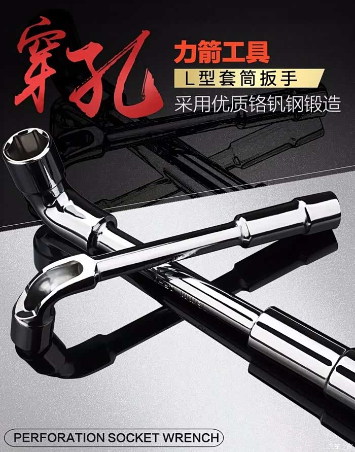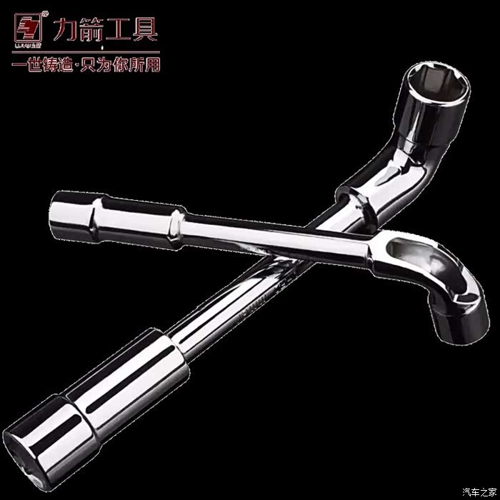 随车带的换轮胎扳手正好可以派上用场了19mm,配合加力套管使用,省力不少