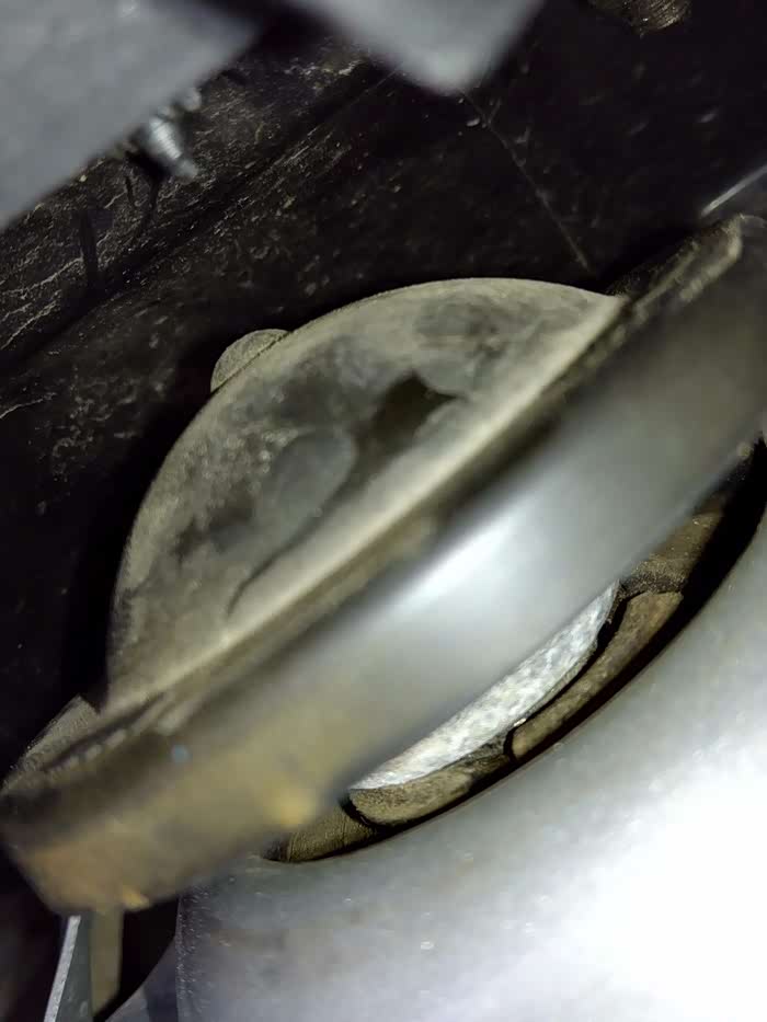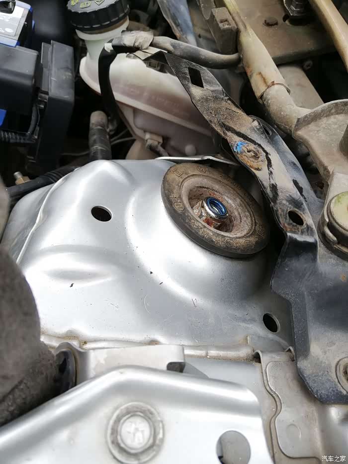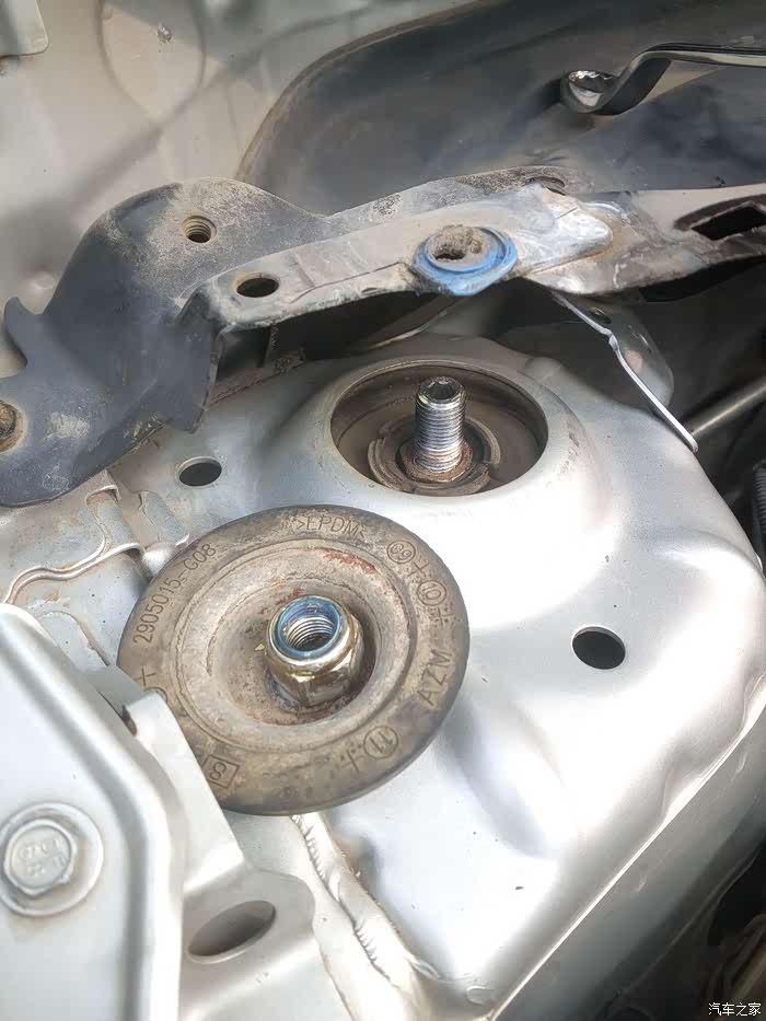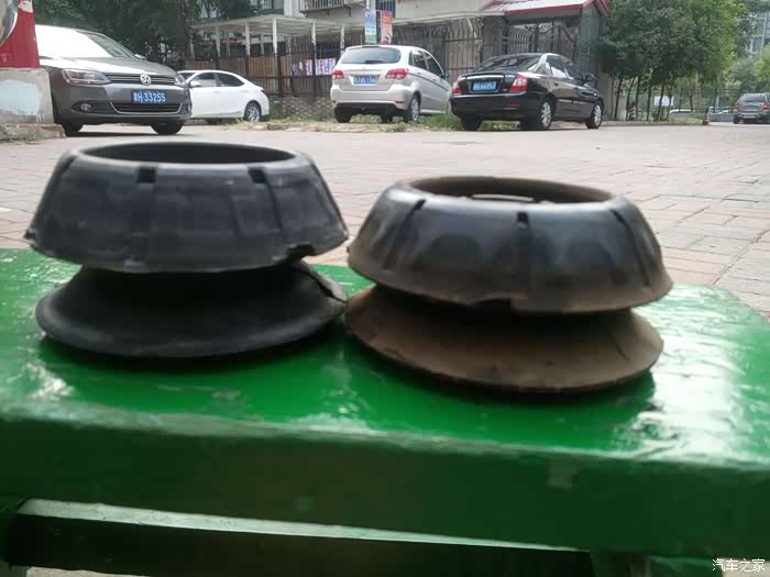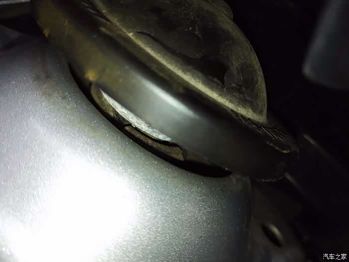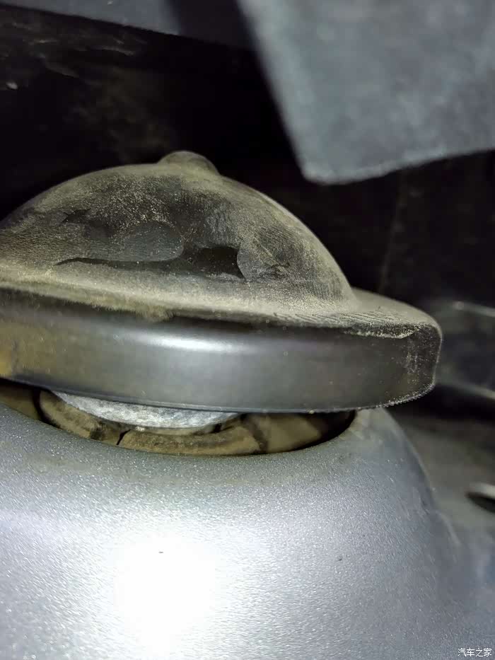 换顶胶之前先看看此时的减震上间隙,这都是由于顶胶被压扁太多造成的,左侧