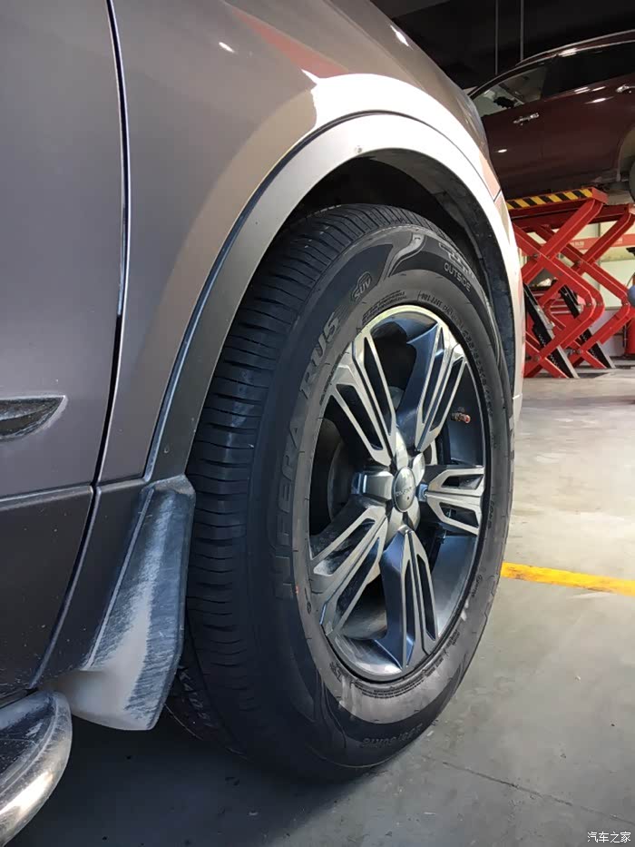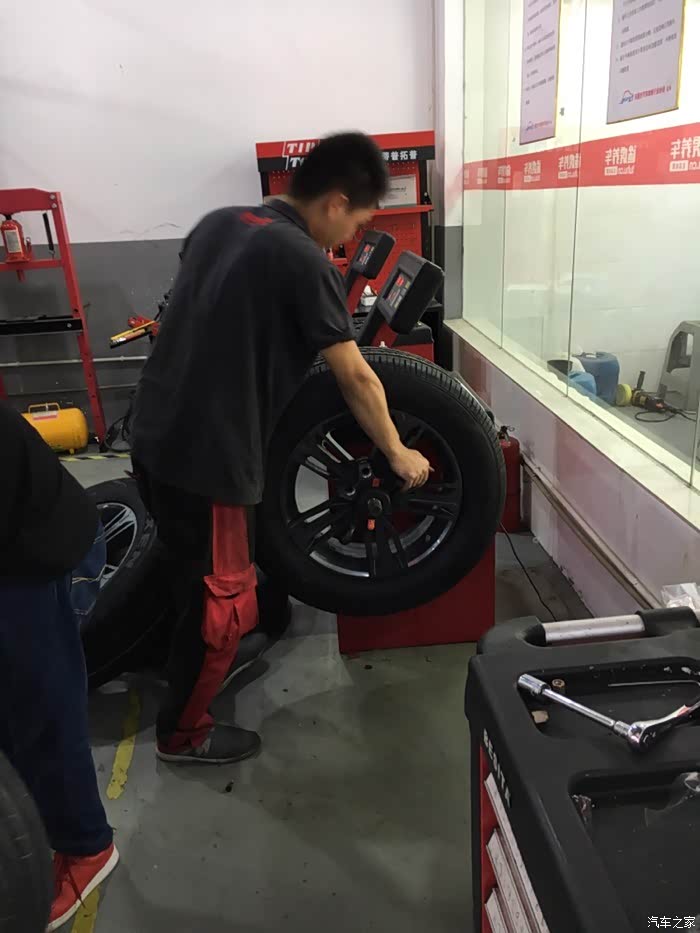 这张是换完胎后,另外掏钱买的四轮定位,作业中,图片次序有点乱,看官们将就下。