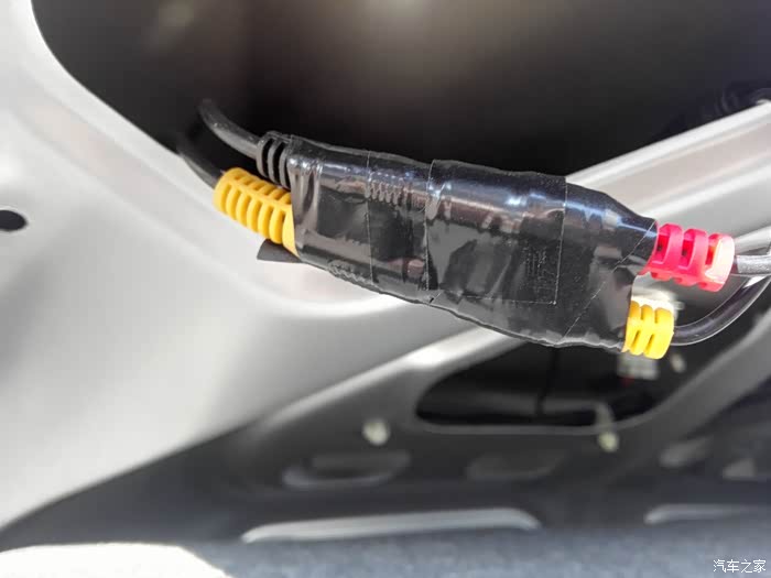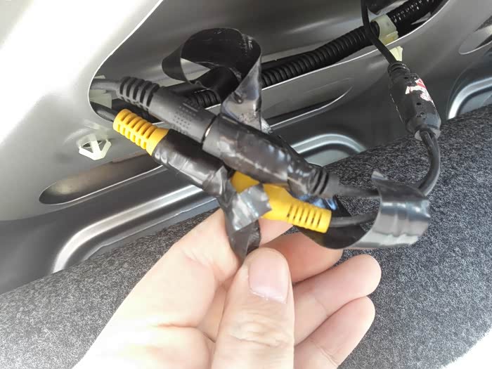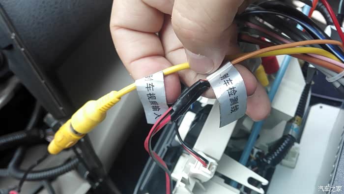 另附一张我今天换中控大屏时拍的可视倒车影像链接中控的2个线 黄色同轴是视频线这个很好理解 目前同轴电缆被广泛应用于视频和音频输出输入; 另一根是红黑双股 黑色接地也可以不接 红色接倒车视频检测线,意思就是当挂倒挡时 倒车灯亮同时点亮摄像头 正跟线检测到了电压后启动屏幕显示摄像头的视频信号