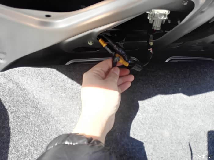 另一根黑色的也是可插拔式的为电源线 线的另一端接到了倒车灯上 就是倒车时 倒车灯亮 同时供电给摄像头 摄像头启动