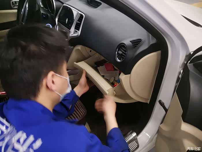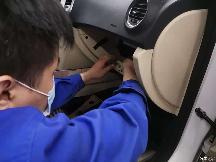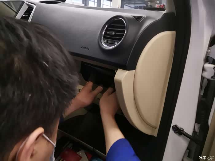 拆下固定的卡扣,小哥哥准备取下手套箱