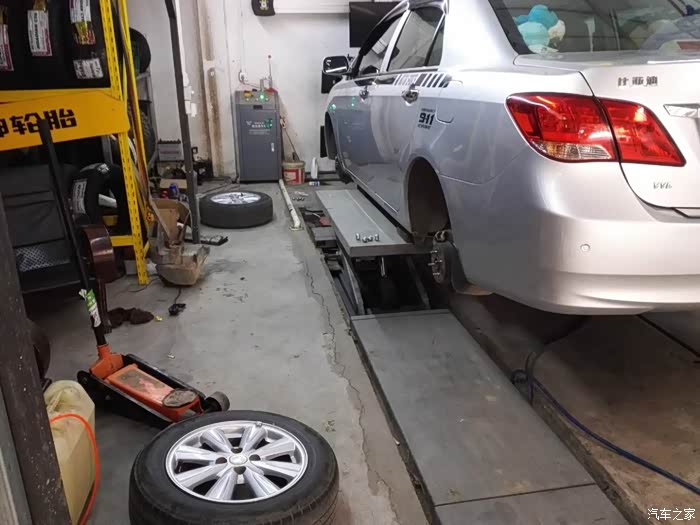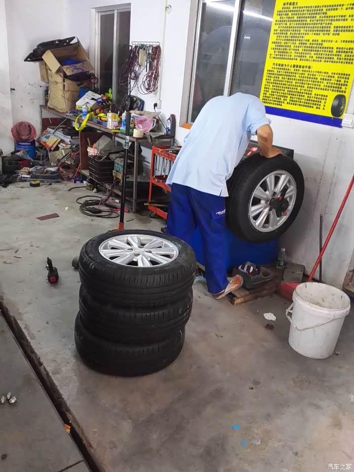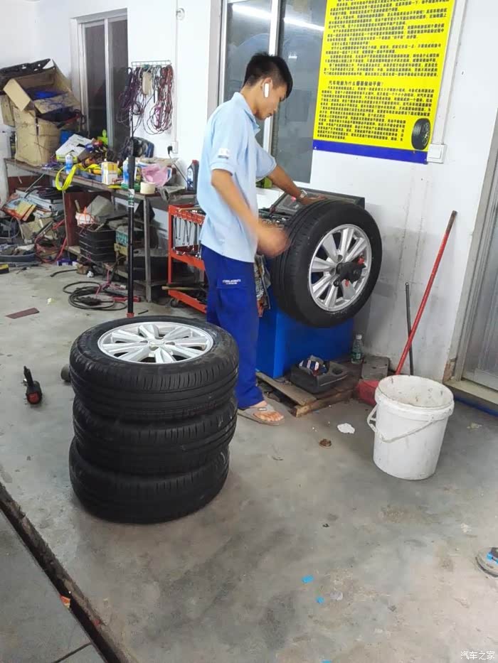 小师傅正在为换上的新胎做动平衡,气嘴换上了铝合金的(途虎送的),都是免费的哦!