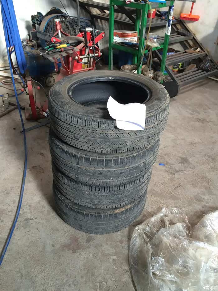 把四个服役5年的旧轮胎一起卸掉,准备换新胎啦!