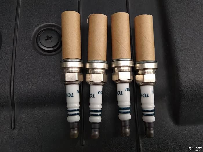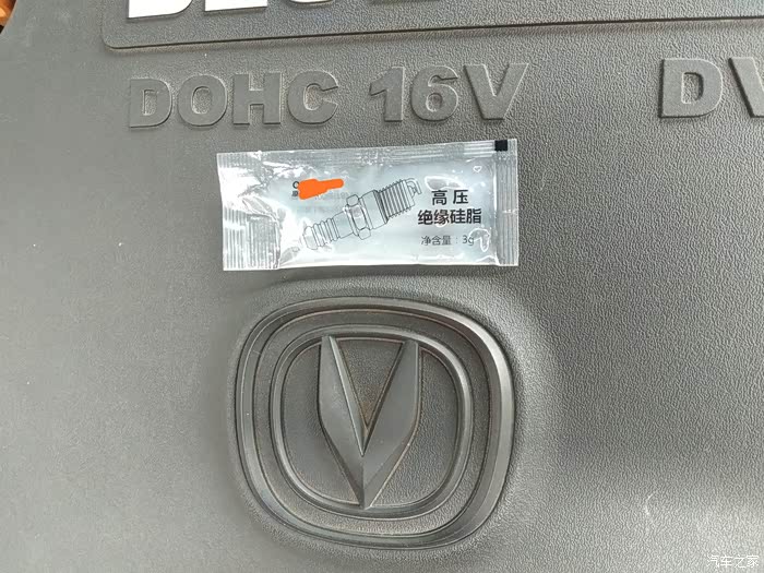 四个缸的火花塞全部拆掉以后就可以开始装新的火花塞了,顺便把送的绝缘硅脂给涂上