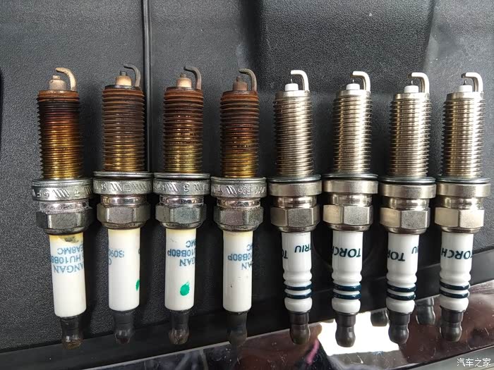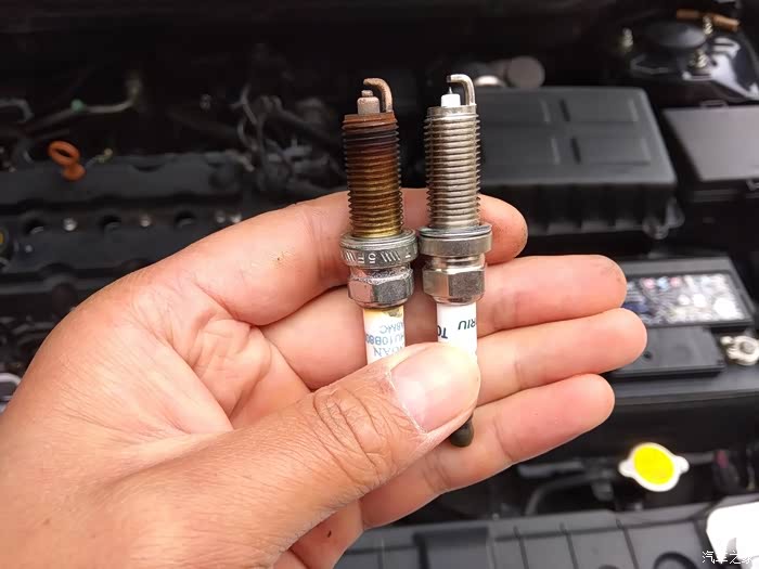 镍合金材质的火花塞耐高温性能要差一点,中间点火电极已经熔掉一部份了