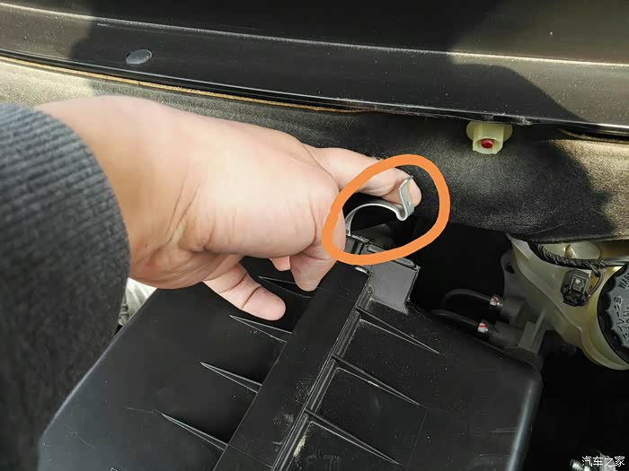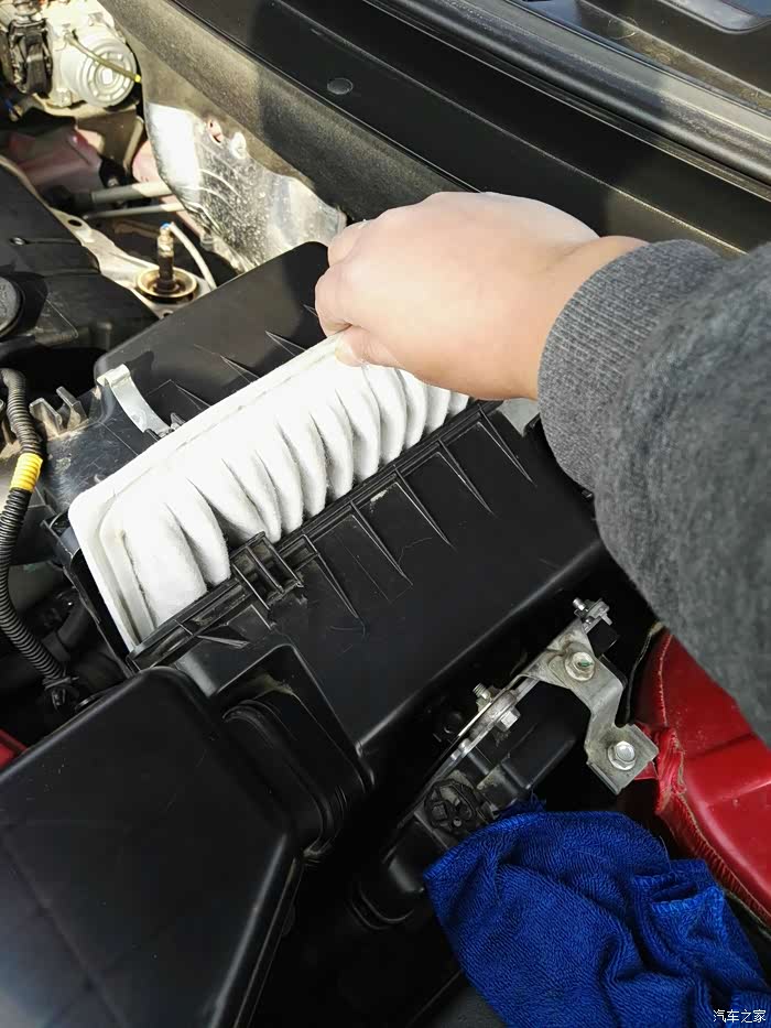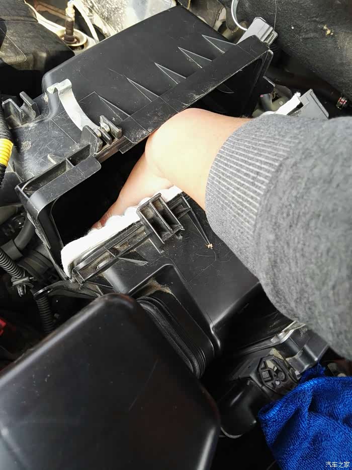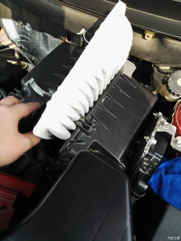拿出空滤,注意一只手是拿不出的,左手要分开张口的,因左手在拍图故看不见左手。