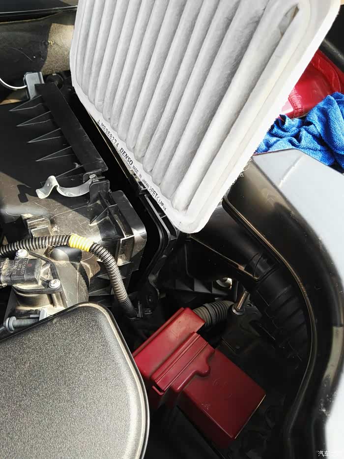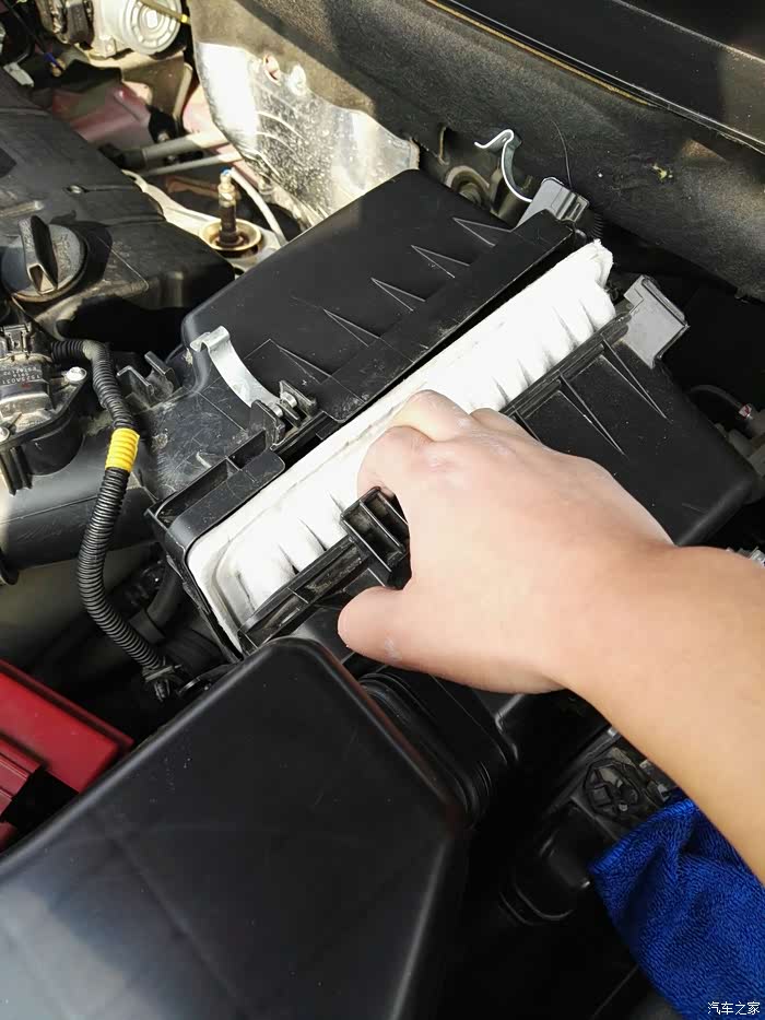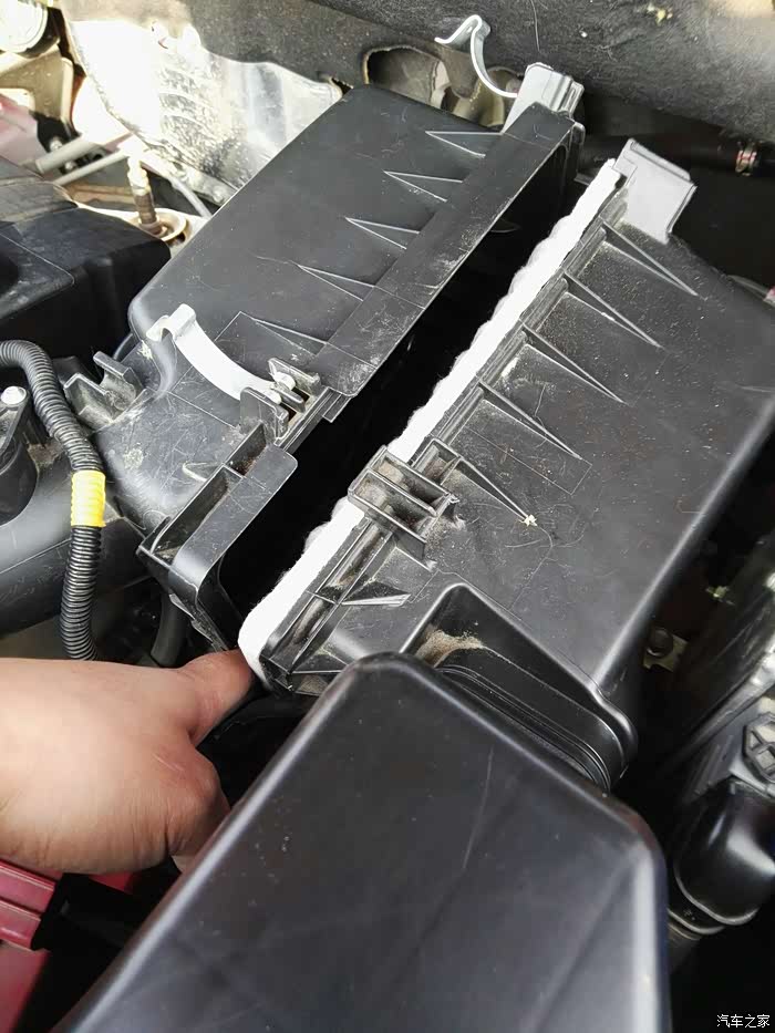拿出空滤,注意字母朝向,复原时别装错。