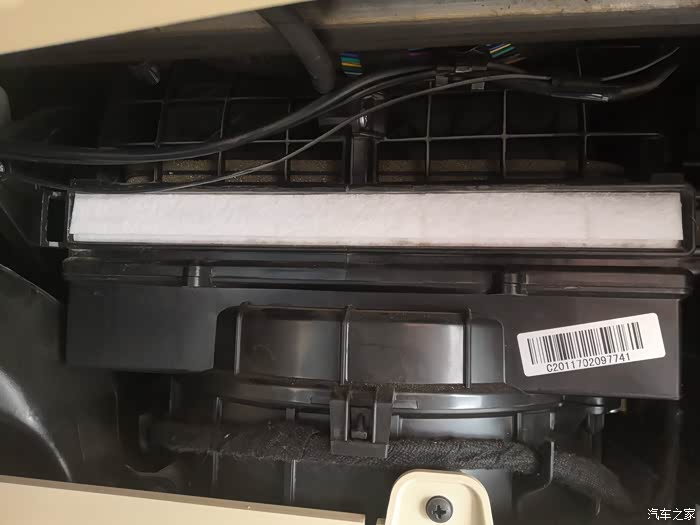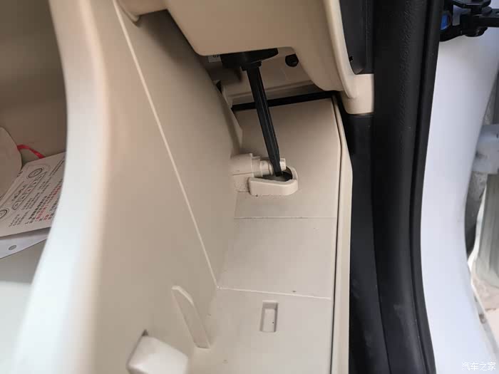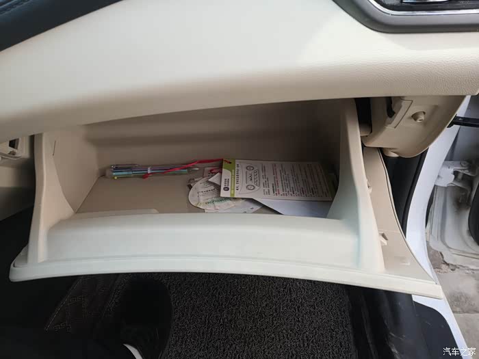 拆卸下来储物箱以后,内部的情景,各个部位设计的紧凑但又不凌乱。打开那个横向的长方形条盖就可以看见里面的空调滤芯了。