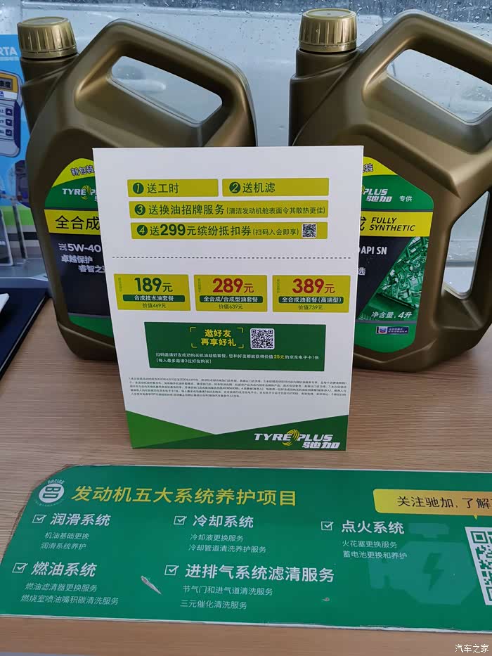看看这个活动价,是不是非常划算,还送各种安全检查,大品牌,放心。我选的389的全合成。用的壳牌