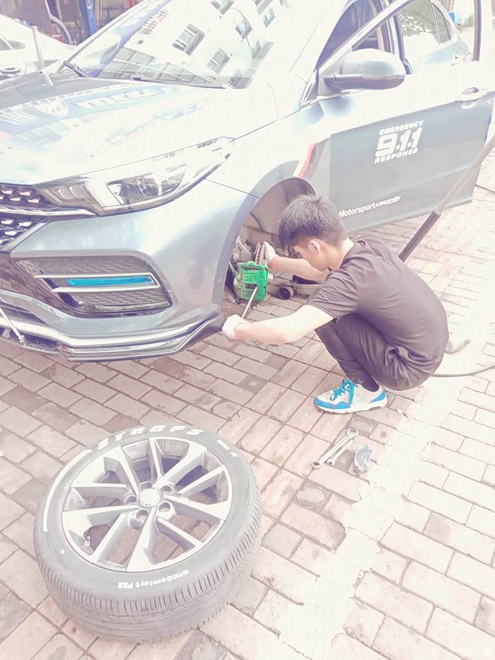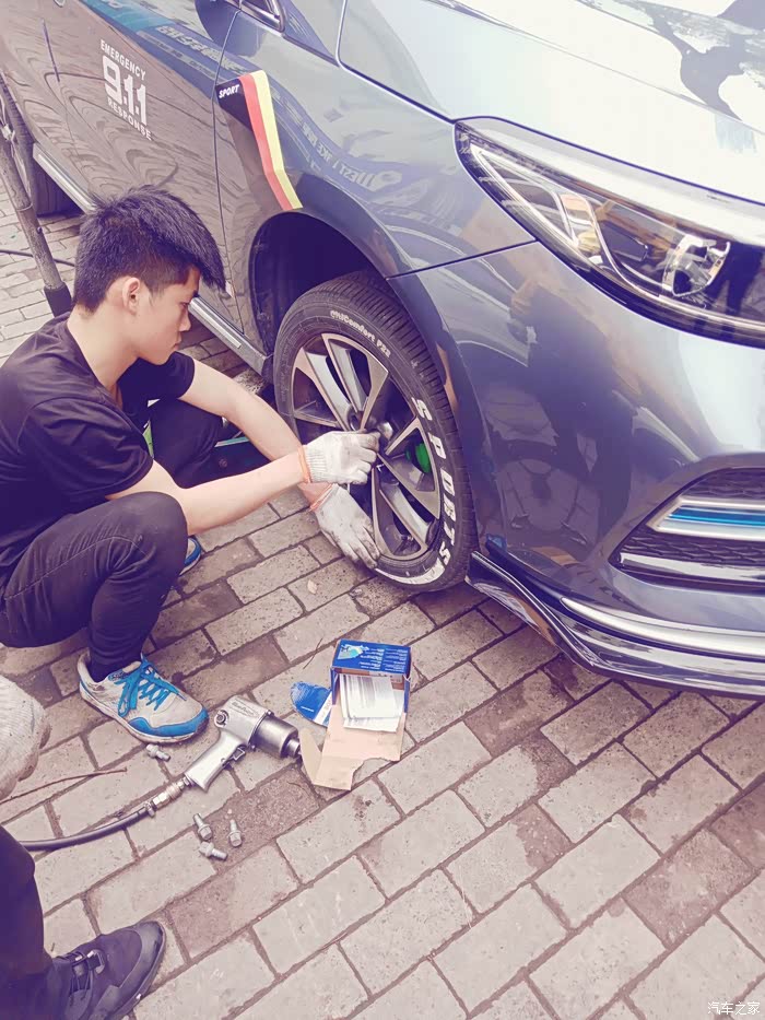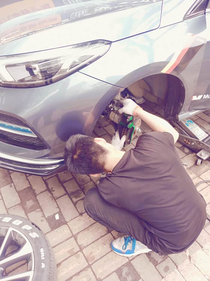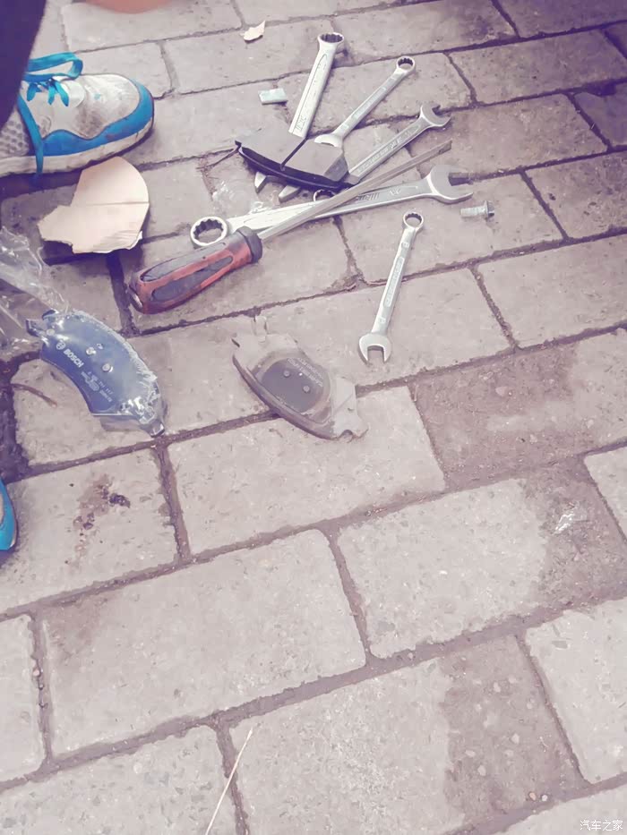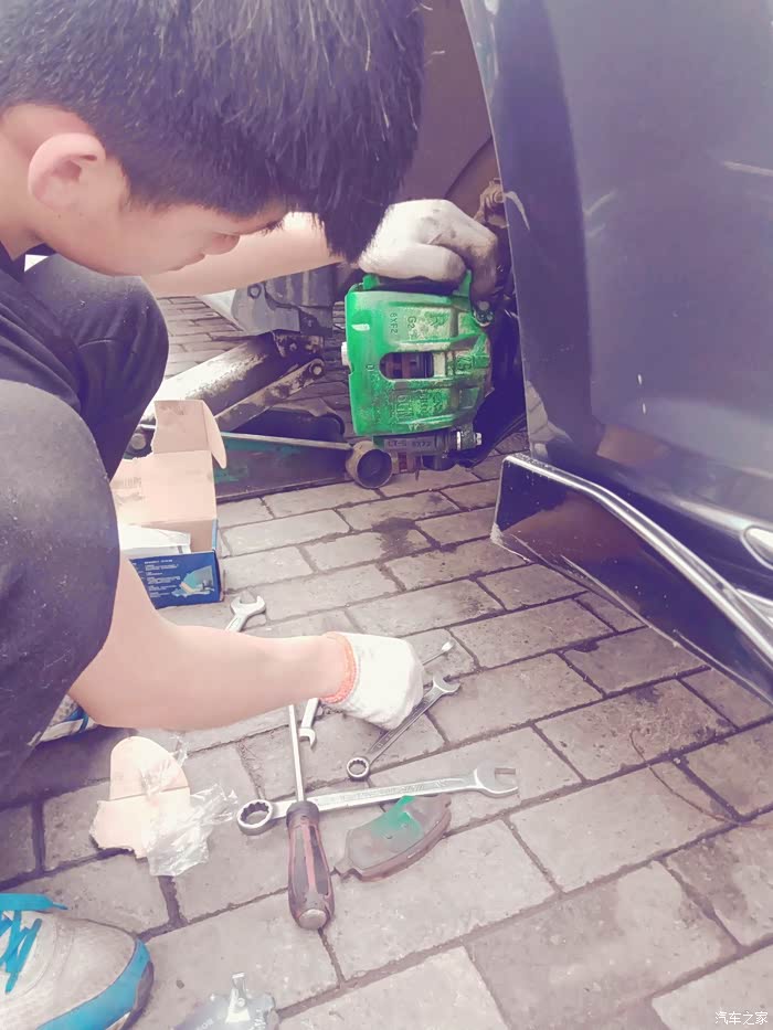 看了一下轮胎,4万公里了,轮胎胎纹清晰检查新刹车片,就怕不匹配,还好,可以用