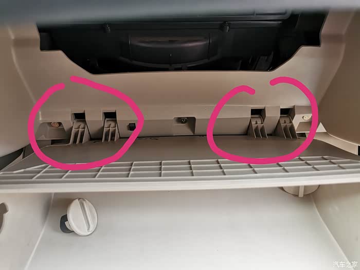 将手套箱固定旋钮取下了,手套箱就可直接放下来