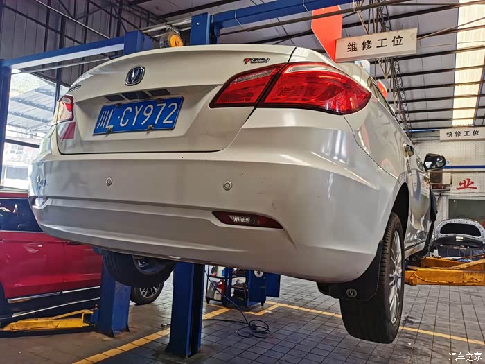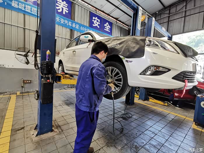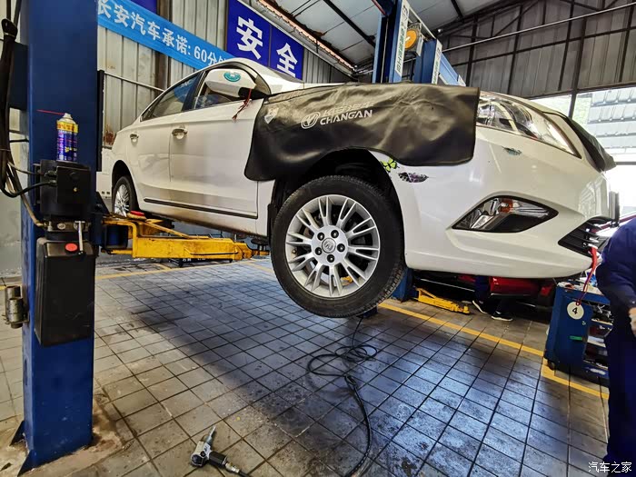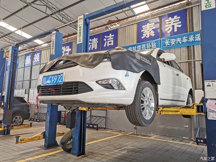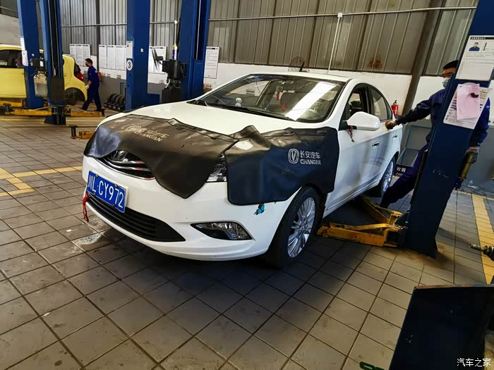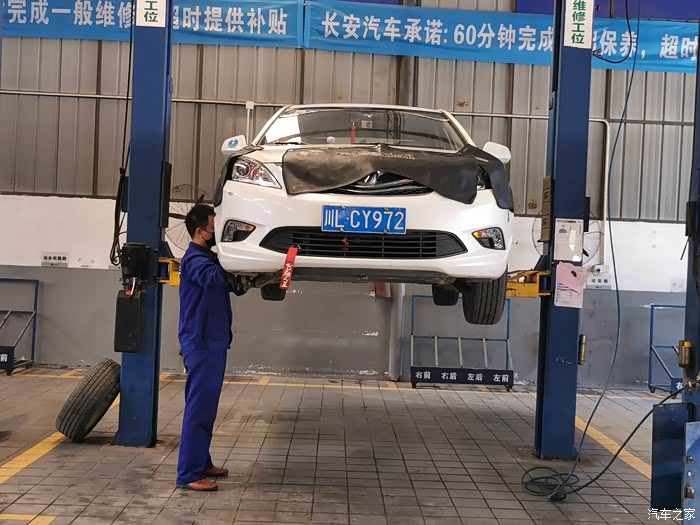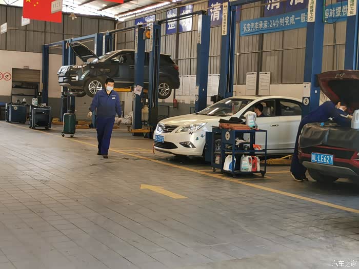 查到问题所在后,师傅将爱车开进维修工位