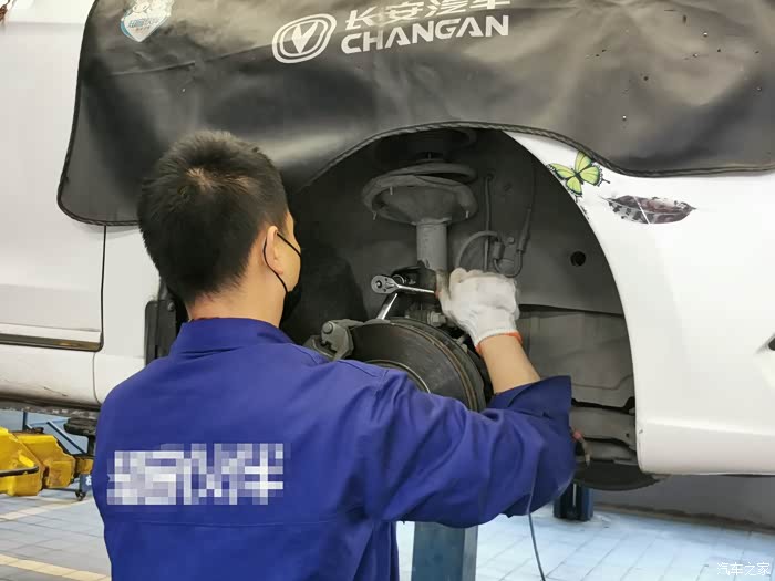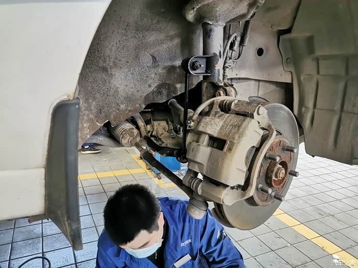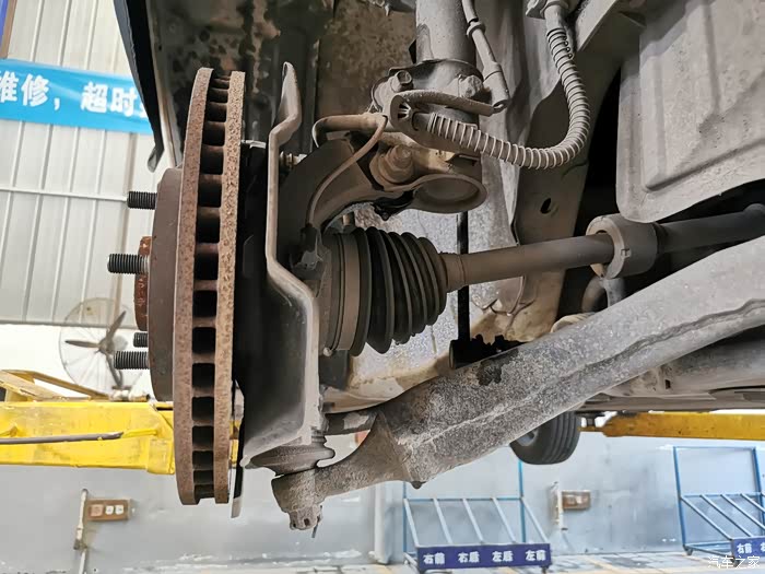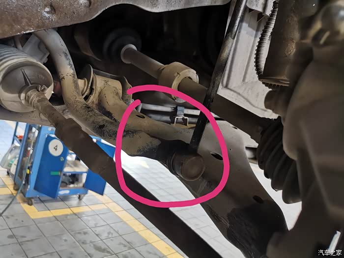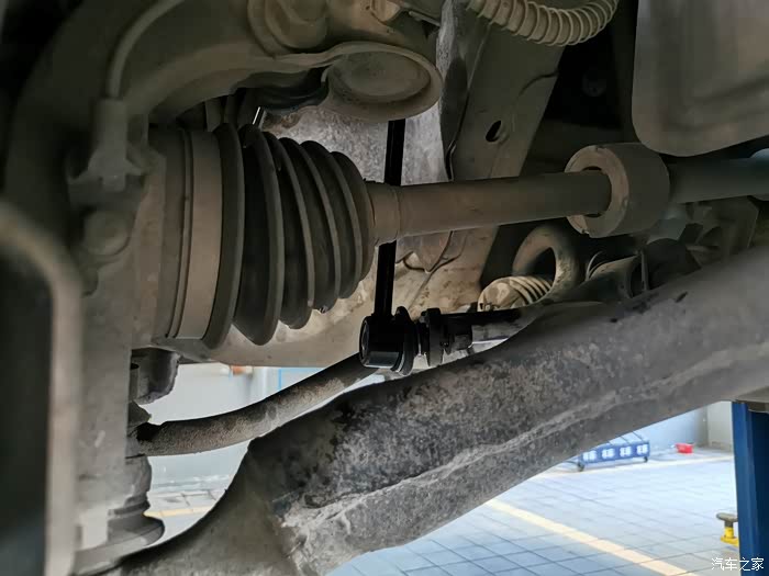 某一天,小逸突然在不平整路段时,车前底部传来了“蹦蹦”声,原本还是以为是发动机护板螺栓被抖松了,自己查看后并不是,于是驾车去附近的店里检查,发现是右前轮胎处的连接杆总成间隙过大,给师傅说明了平时的用车情况,师傅认为就是我经常跑烂路造成的,所以准备更换一根总成,