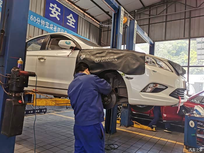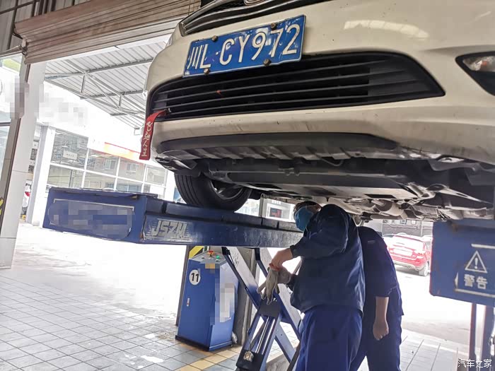然后接待师傅将爱车开到检查工位进行查次排查