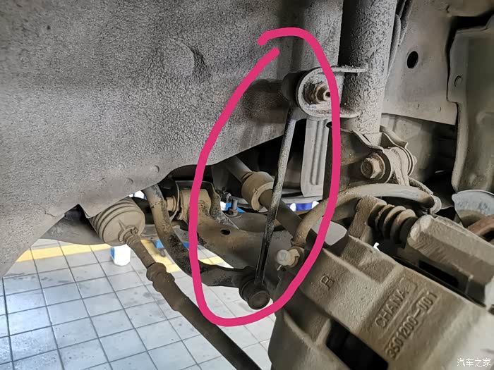 最后还是确定是右前连接杆总成发出的声音,就是圈内这一根连接杆