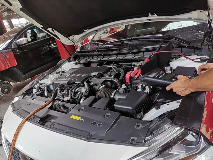 首先是换机油,现在4S店排旧机油都是通过管子从加油口把油抽出来,而不是从车底拧开油底壳螺丝。师傅说这种方式可以把旧机油抽的更干净。等待抽机油的同时,师傅顺便查了下电瓶的电压。