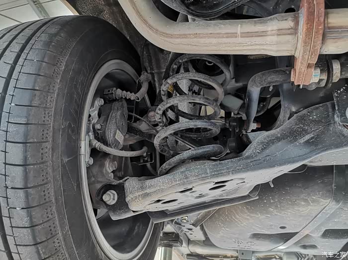 后悬结构比较复杂,这一块除了悬架,还有制动和排气系统。