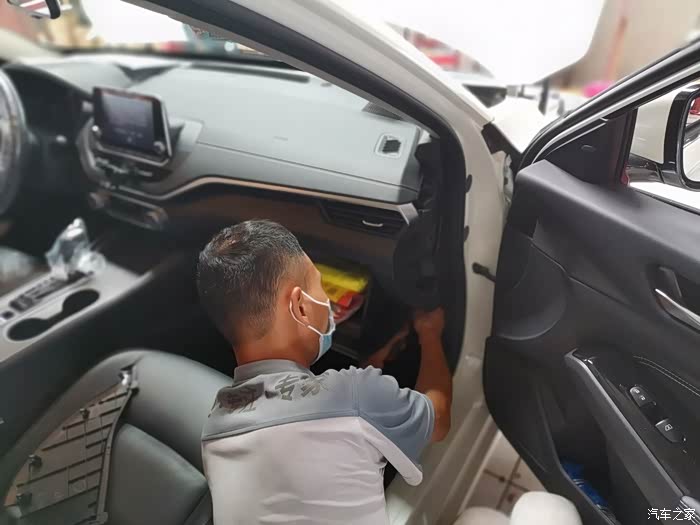 接下来是清理空调滤芯和空气滤芯。拆除空调滤芯比较麻烦,需要拆掉中控侧板以及手套箱。我以为要换掉两个滤芯的,结果师傅说用高压空气吹一下灰尘就行。好吧,4S店都说不用换,那肯定没问题了。